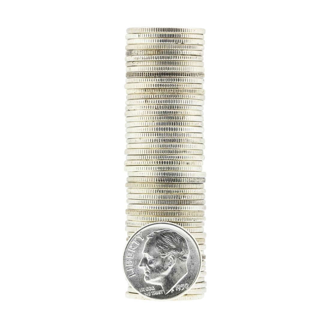 One Roll of (50) 1950-D Brilliant Uncirculated Roosevelt Dimes.