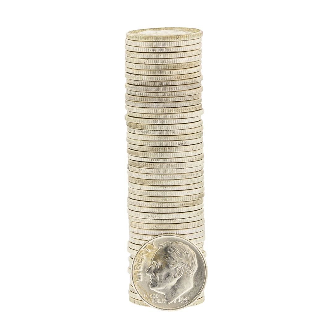 One Roll of (50) 1951-D Brilliant Uncirculated Roosevelt Dimes.