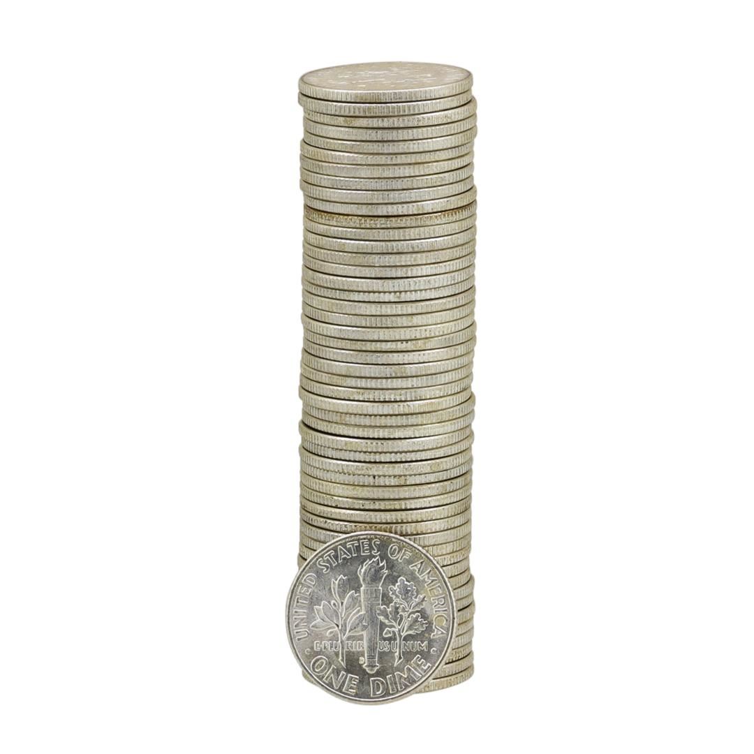 One Roll of (50) 1951-D Brilliant Uncirculated Roosevelt Dimes.