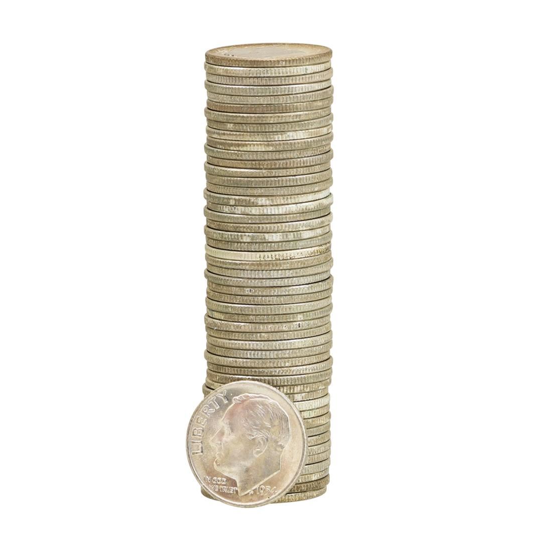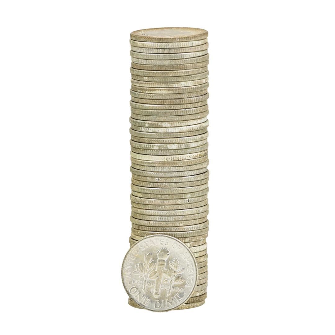 One Roll of (50) 1954-D Brilliant Uncirculated Roosevelt Dimes.
