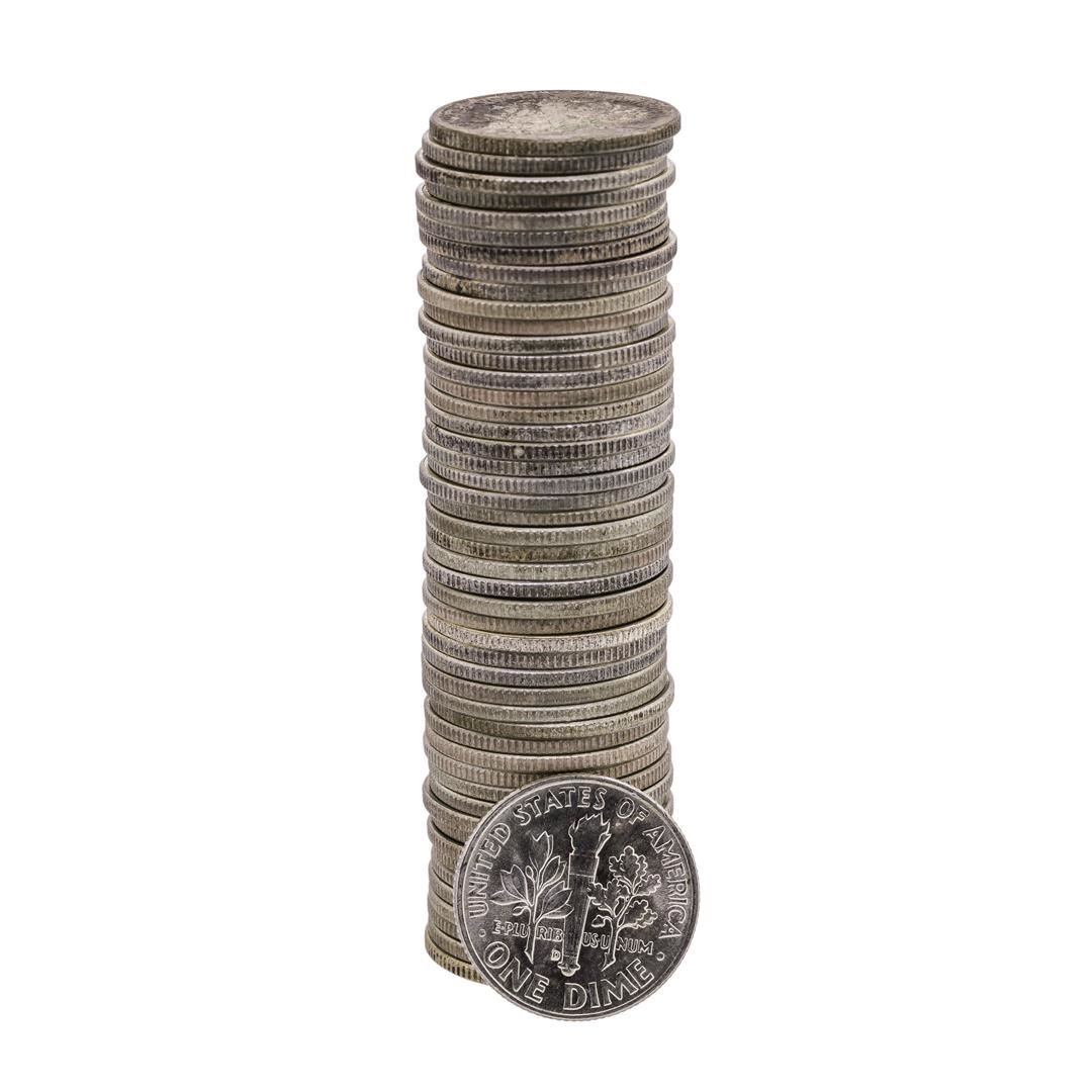 One Roll of (50) 1954-D Brilliant Uncirculated Roosevelt Dimes.