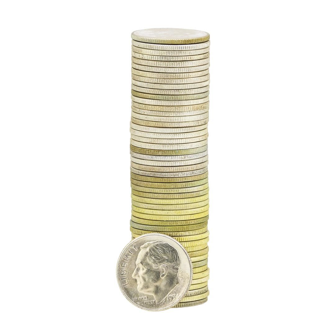 One Roll of (50) 1954-S Brilliant Uncirculated Roosevelt Dimes.