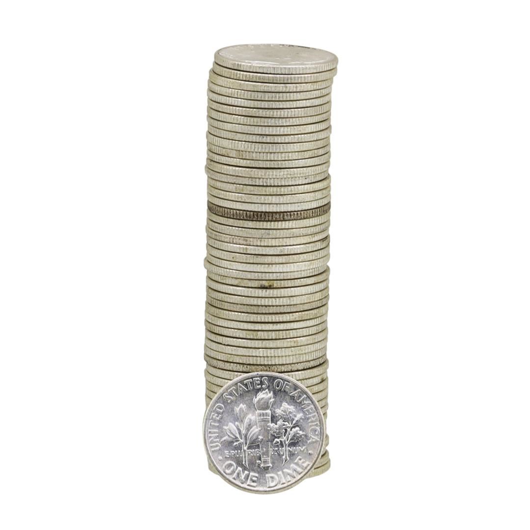 One Roll of (50) 1955-D Brilliant Uncirculated Roosevelt Dimes.