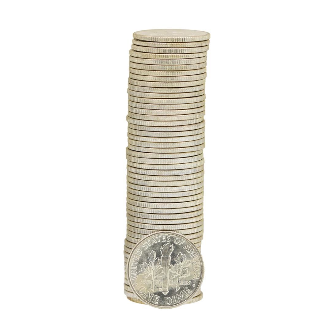 One Roll of (50) 1955-D Brilliant Uncirculated Roosevelt Dimes.