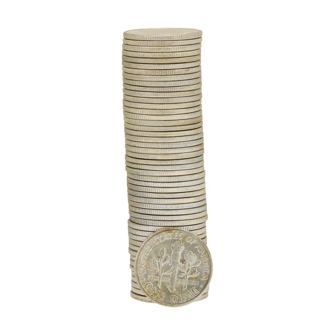 One Roll of (50) 1955-D Brilliant Uncirculated Roosevelt Dimes.