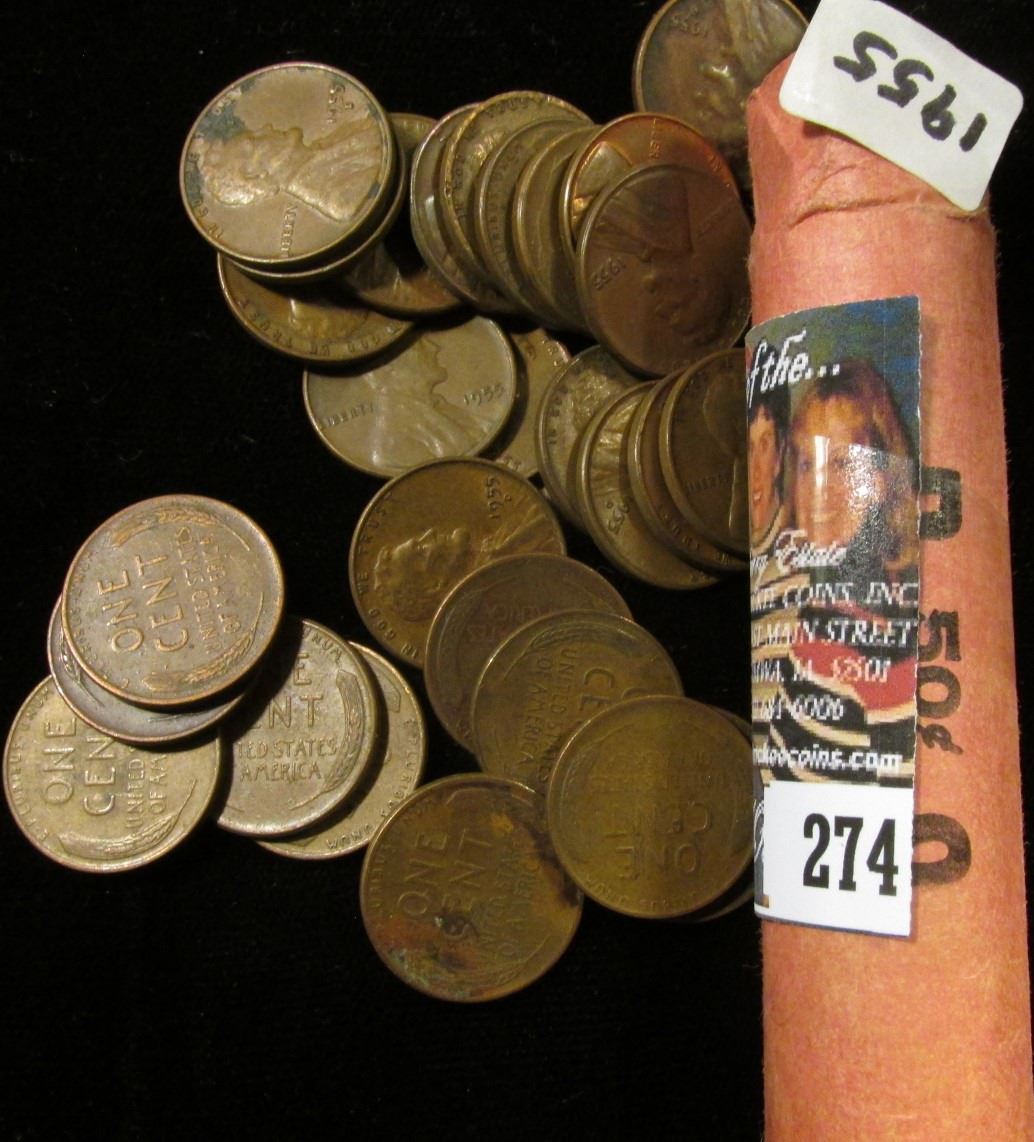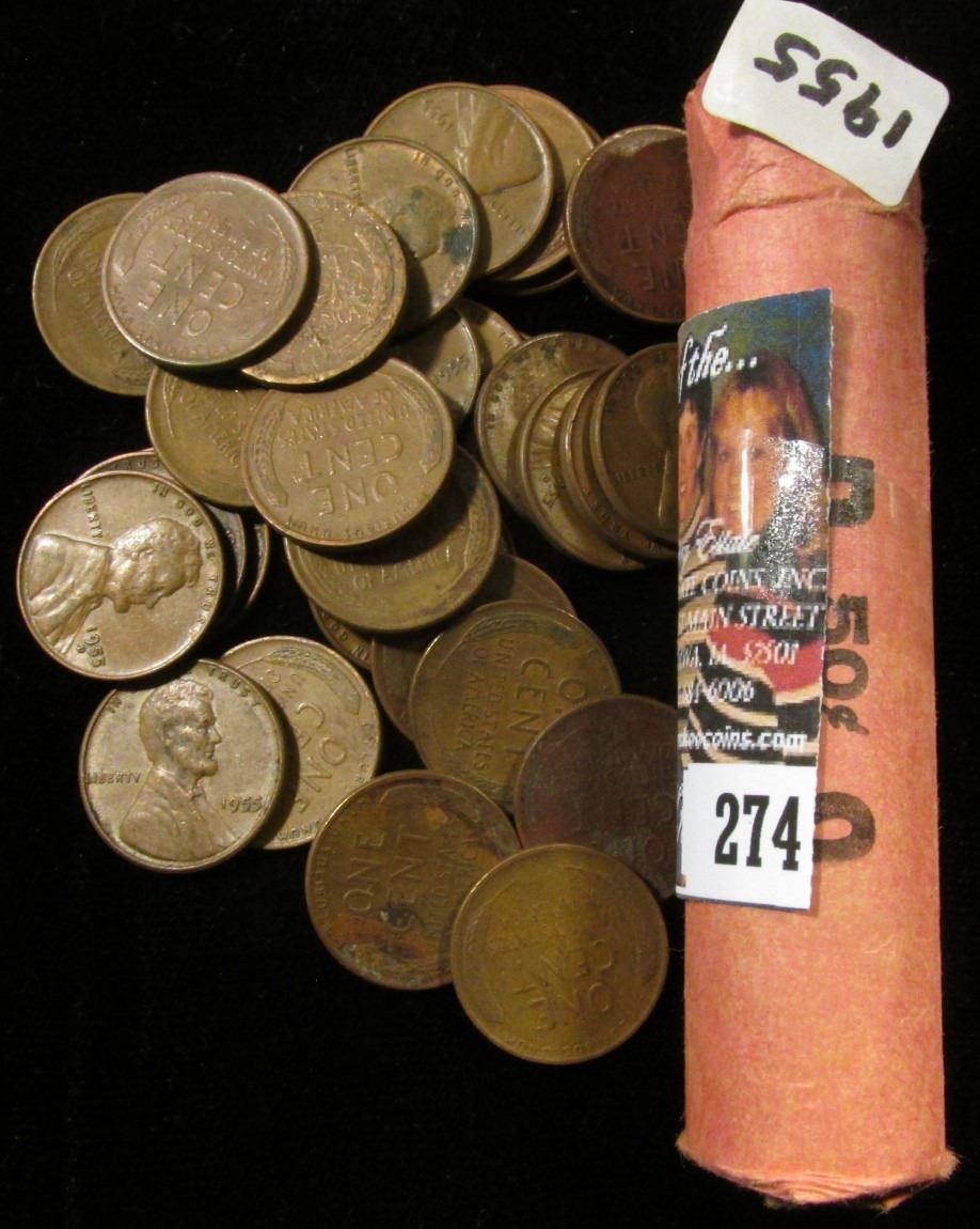 Roll of (50) 1955 Mixed Mint mark Lincoln Cents in a paper wrapper. Circulated.