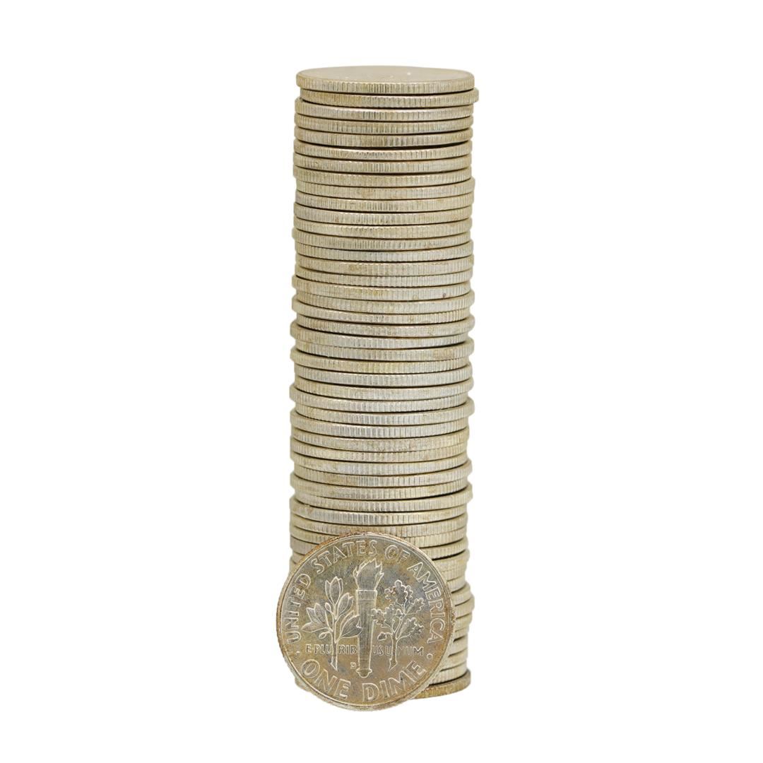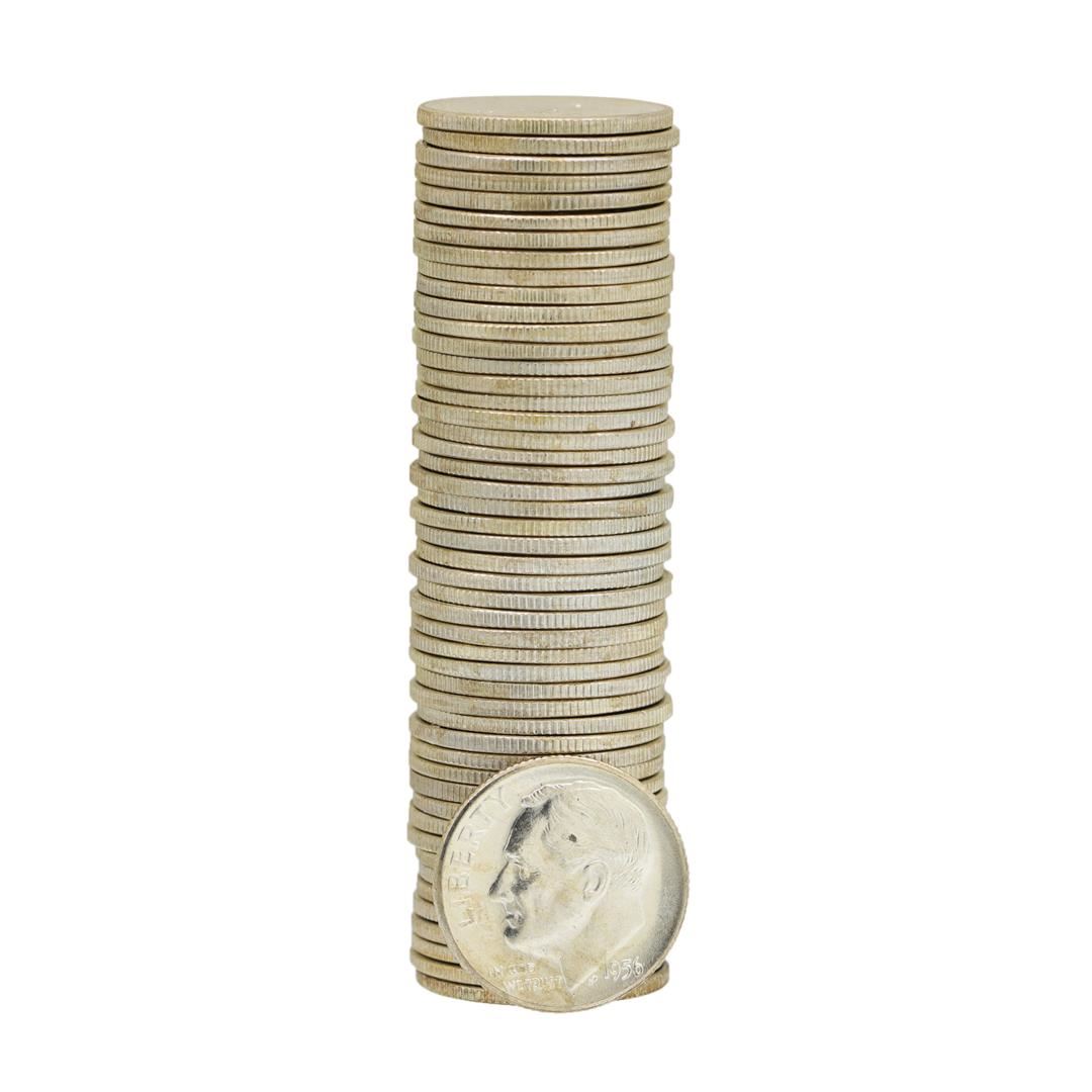 One Roll of (50) 1956-D Brilliant Uncirculated Roosevelt Dimes.