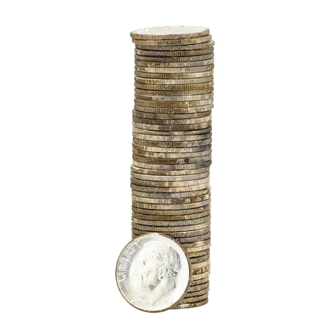 One Roll of (50) 1956-D Brilliant Uncirculated Roosevelt Dimes.