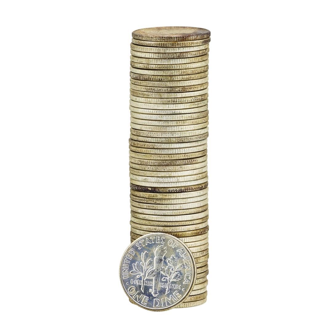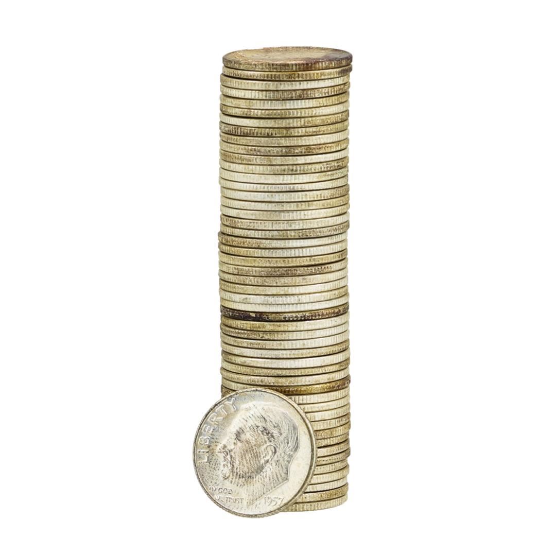 One Roll of (50) 1957-D Brilliant Uncirculated Roosevelt Dimes.