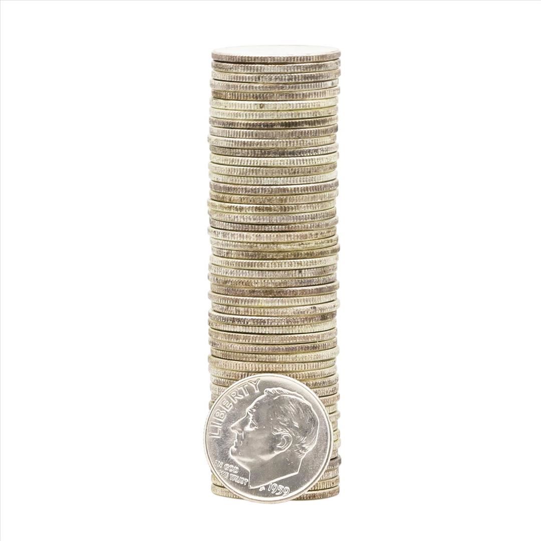 One Roll of (50) 1959 Brilliant Uncirculated Roosevelt Dimes.