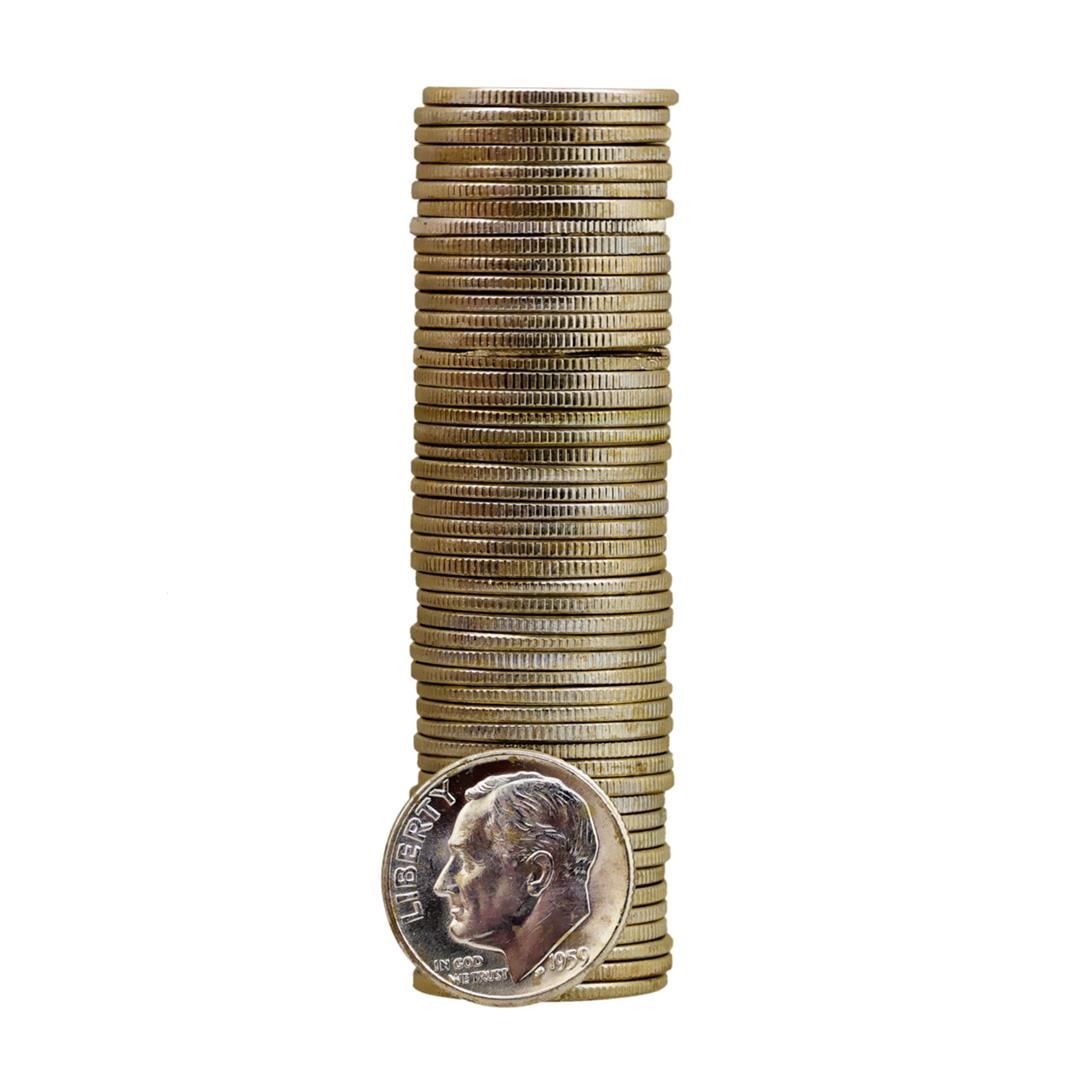 One Roll of (50) 1959 Brilliant Uncirculated Roosevelt Dimes.