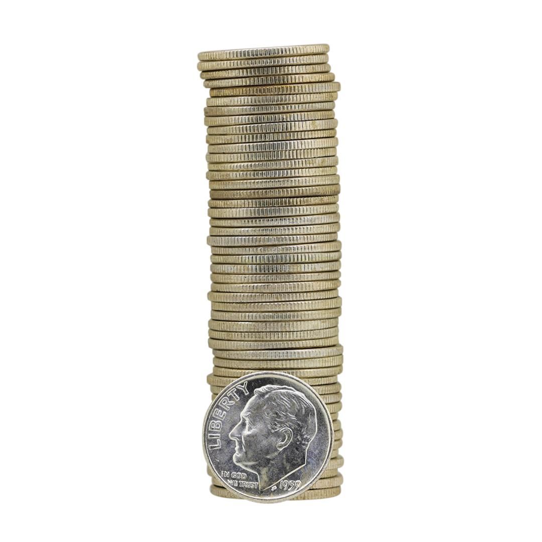 One Roll of (50) 1959-D Brilliant Uncirculated Roosevelt Dimes.