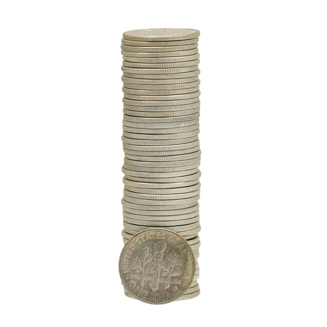 One Roll of (50) 1959-D Brilliant Uncirculated Roosevelt Dimes.