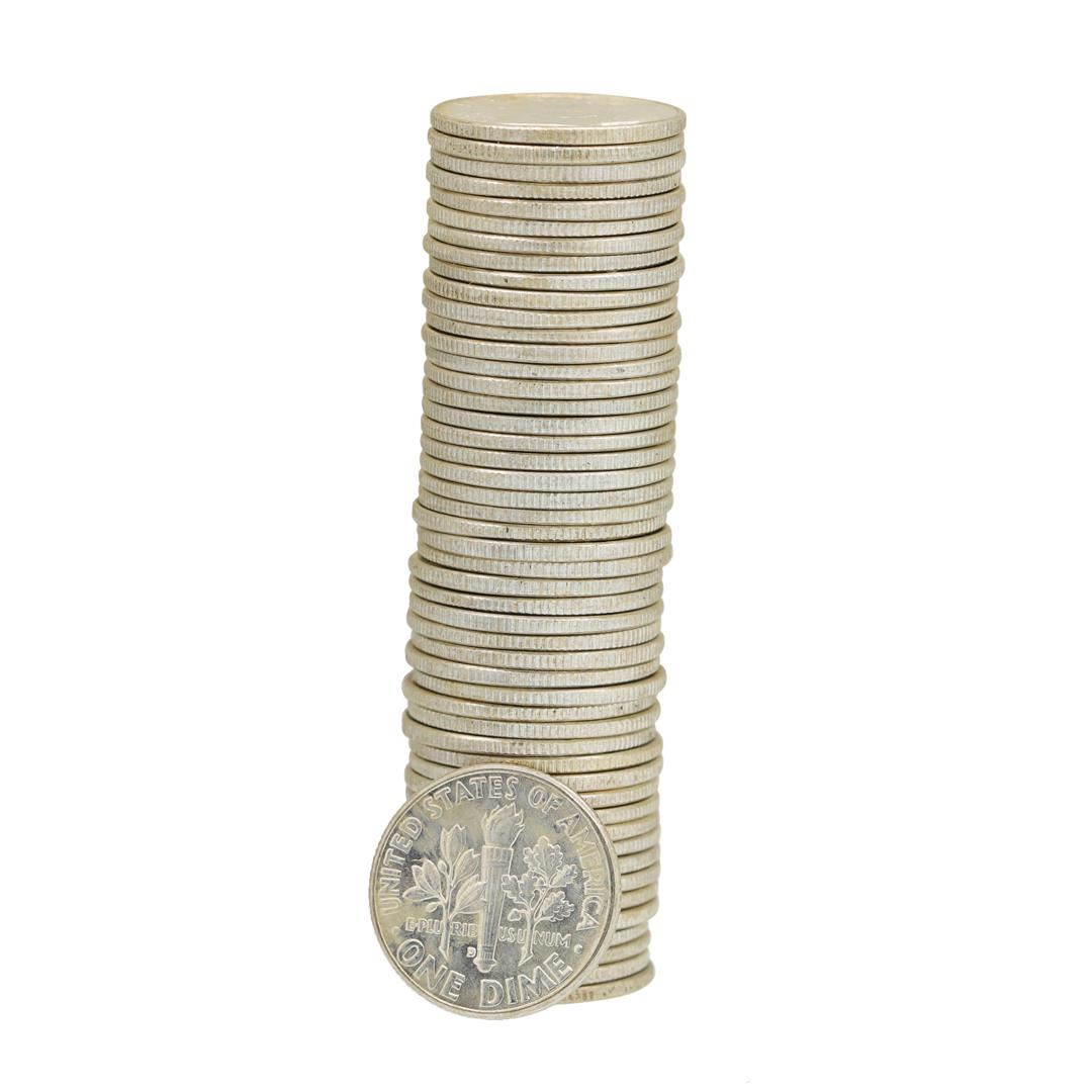 One Roll of (50) 1959-D Brilliant Uncirculated Roosevelt Dimes.