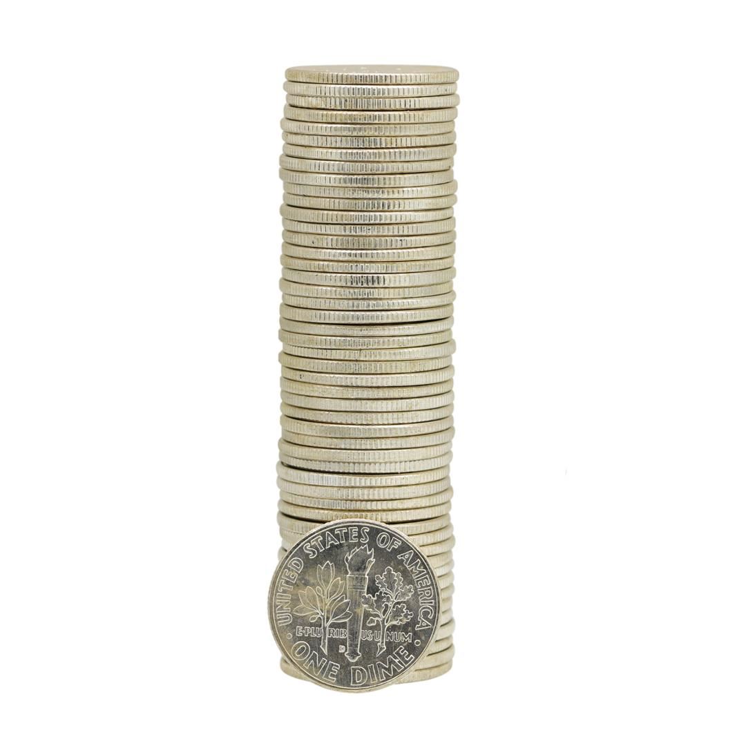 One Roll of (50) 1959-D Brilliant Uncirculated Roosevelt Dimes.