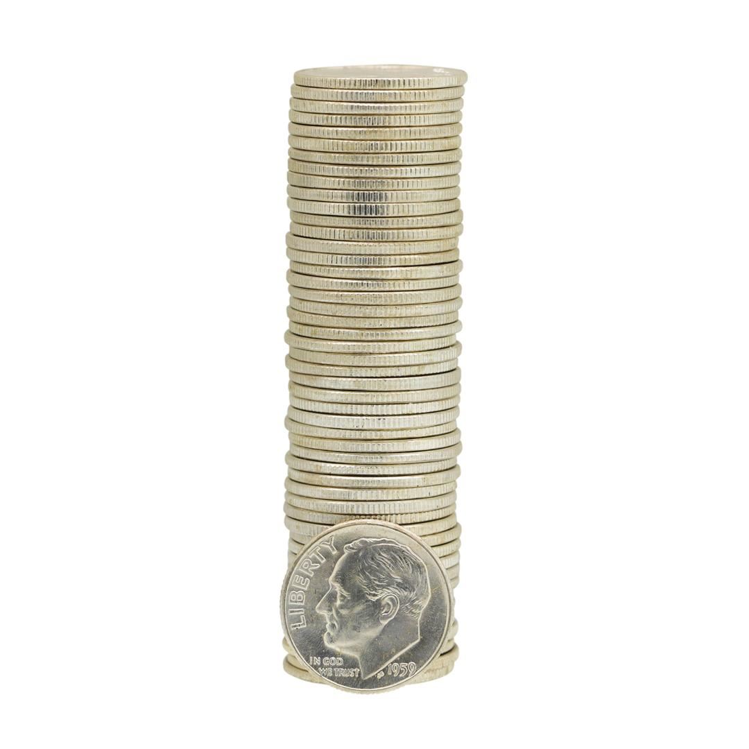 One Roll of (50) 1959-D Brilliant Uncirculated Roosevelt Dimes.