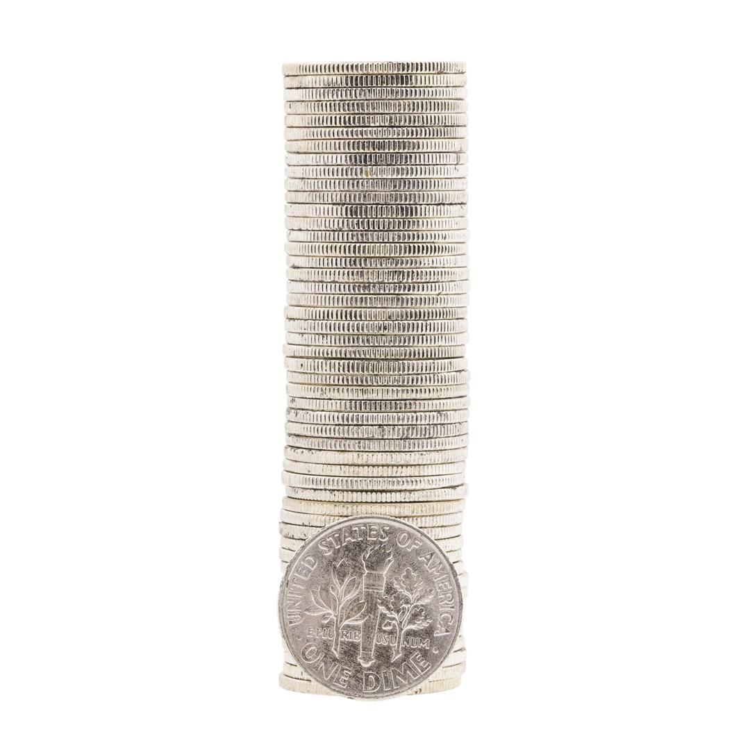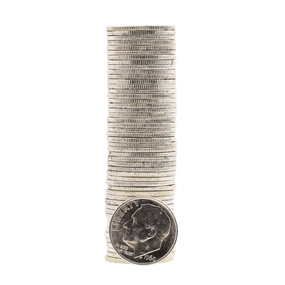 One Roll of (50) 1960 Brilliant Uncirculated Roosevelt Dimes.