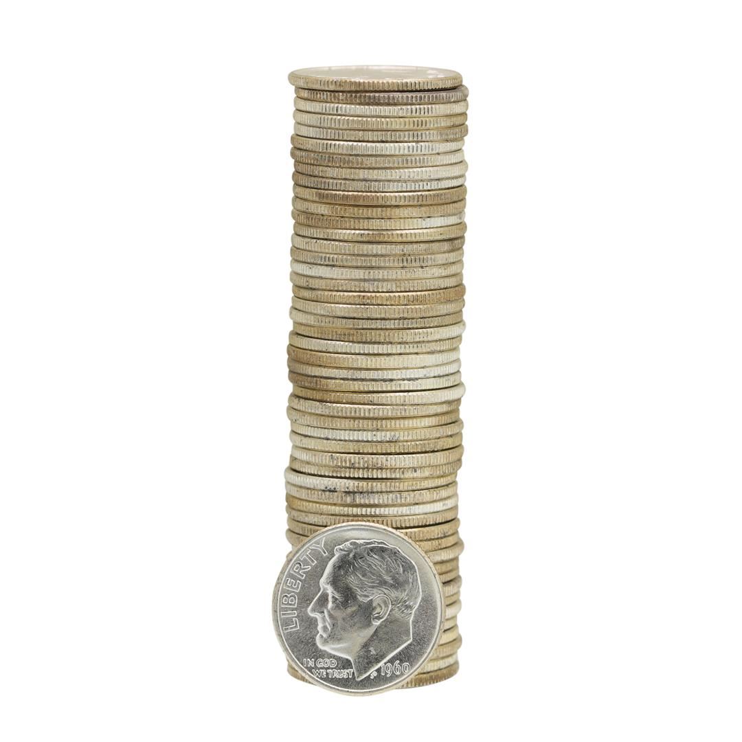 One Roll of (50) 1960 Brilliant Uncirculated Roosevelt Dimes.