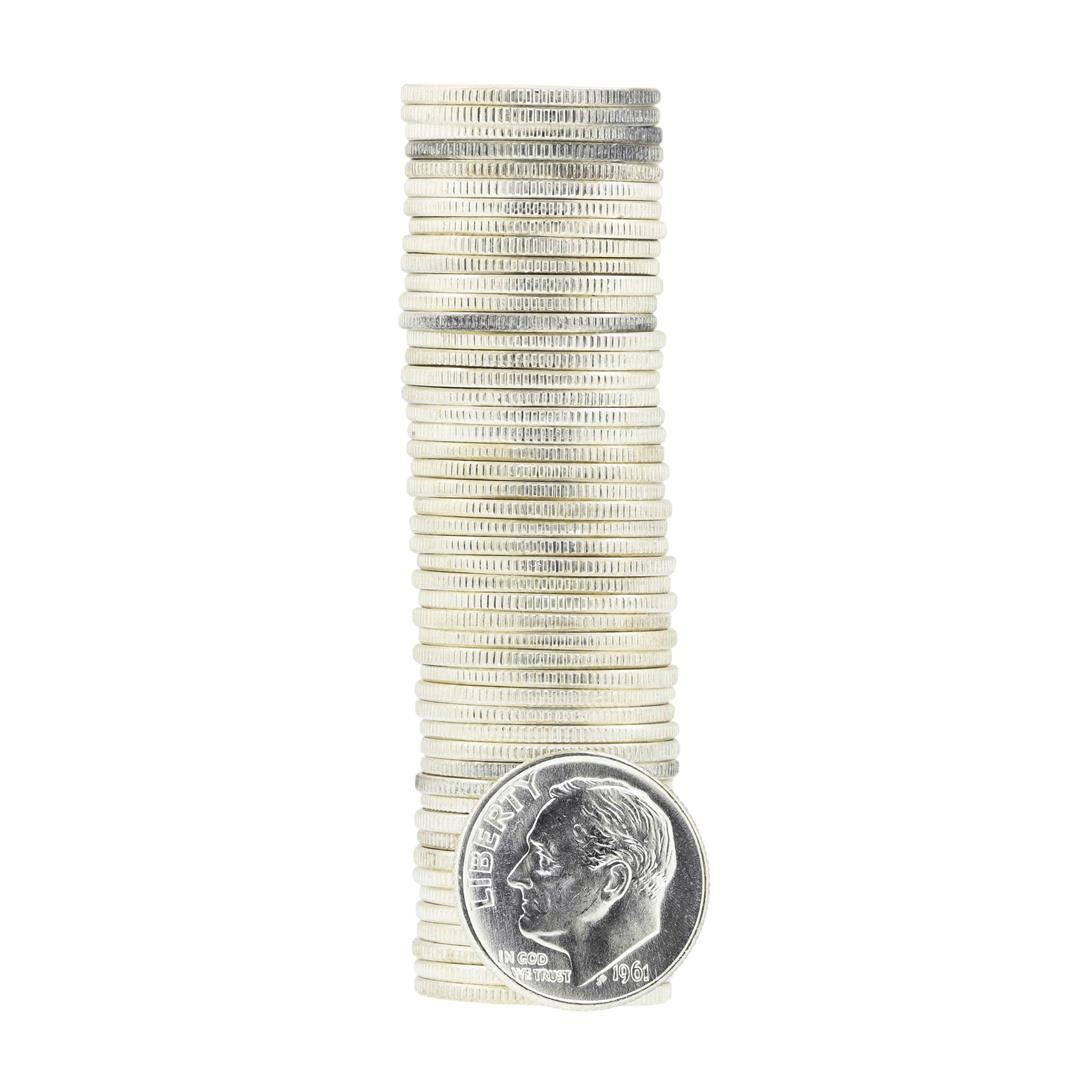 One Roll of (50) 1961-D Brilliant Uncirculated Roosevelt Dimes.