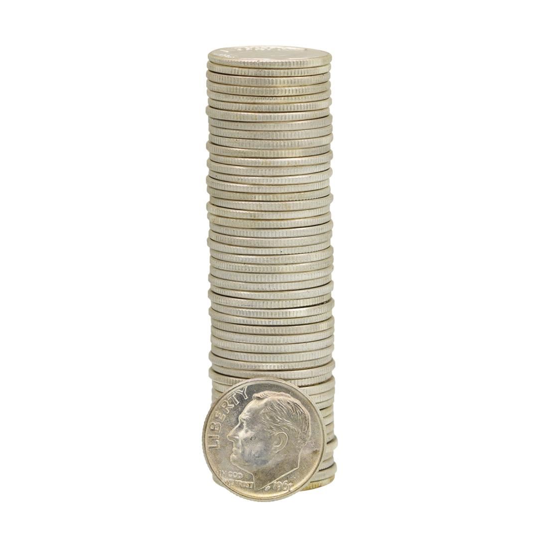 One Roll of (50) 1961-D Brilliant Uncirculated Roosevelt Dimes.