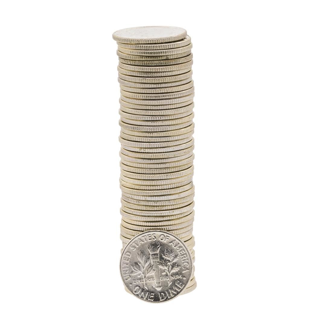 One Roll of (50) 1962-D Brilliant Uncirculated Roosevelt Dimes.