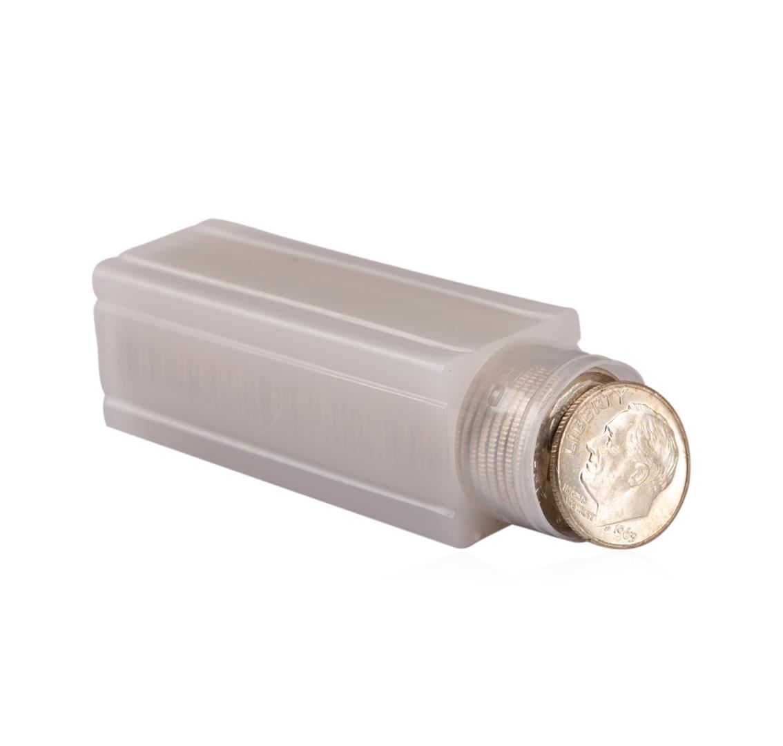 Bidders are advised that certain types of plastic may react with a coin's metal or transfer plasticizer to notes and may cause damage. Caution should be used to avoid storage in materials that are not inert.