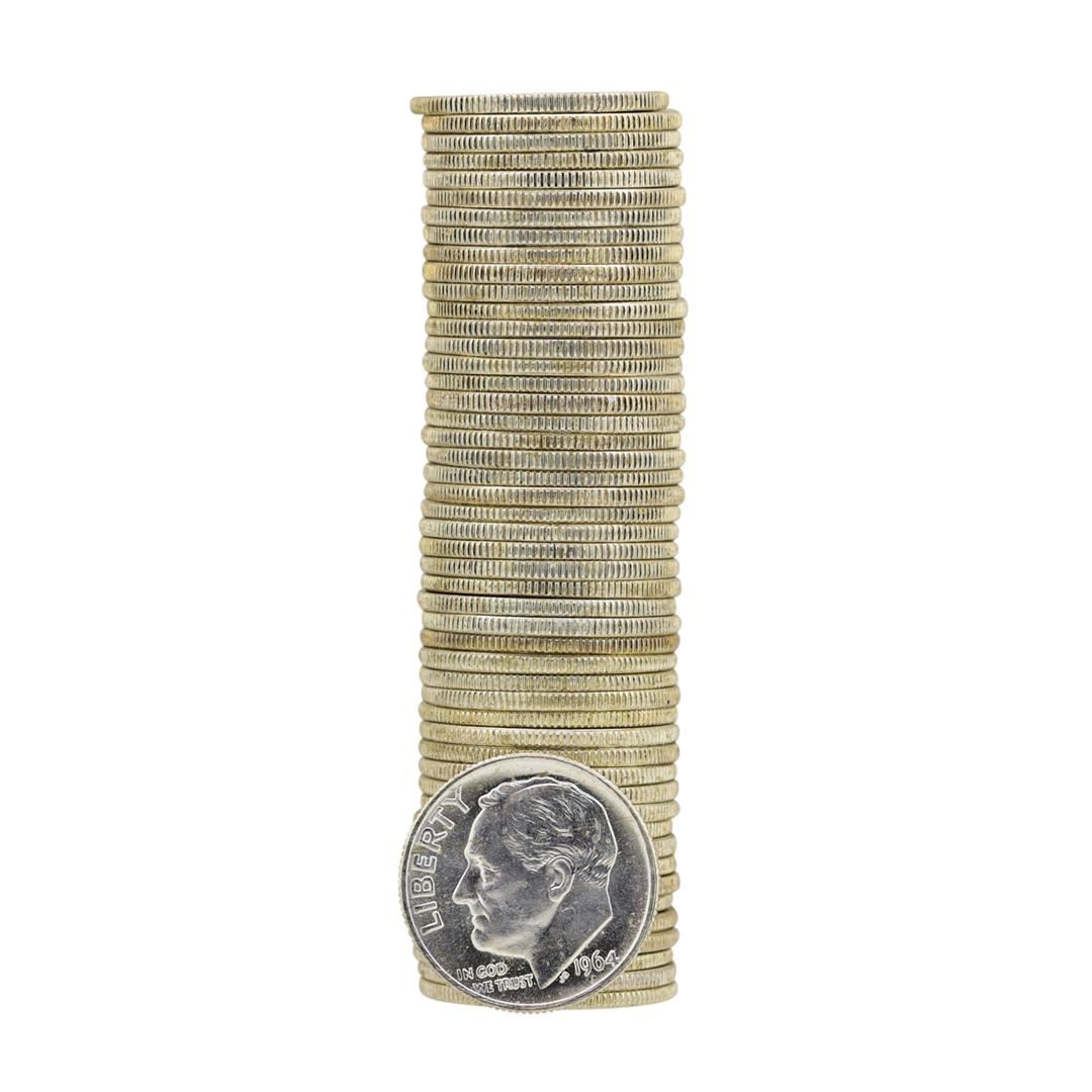 One Roll of (50) 1964 Brilliant Uncirculated Roosevelt Dimes.