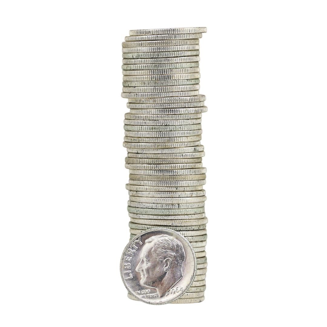 One Roll of (50) 1964 Brilliant Uncirculated Roosevelt Dimes.