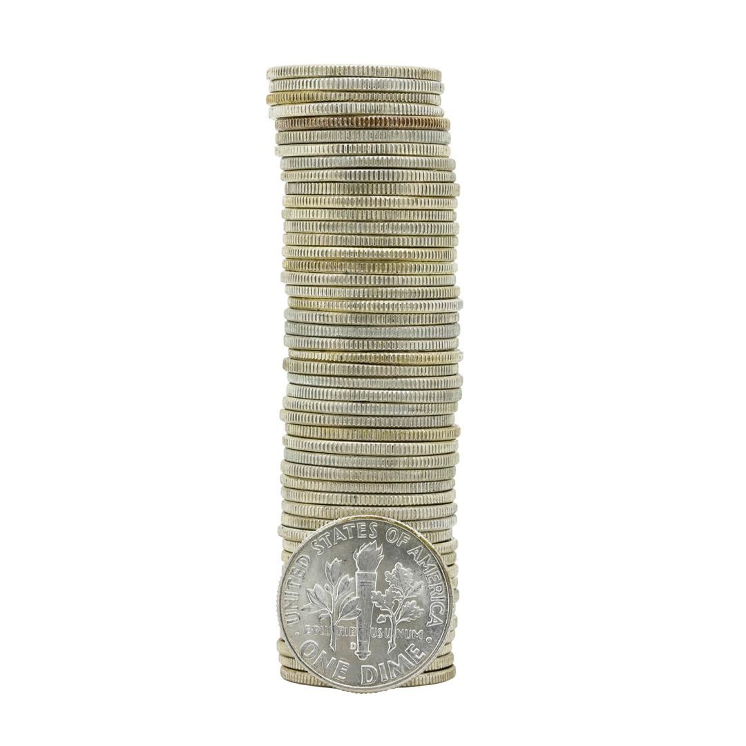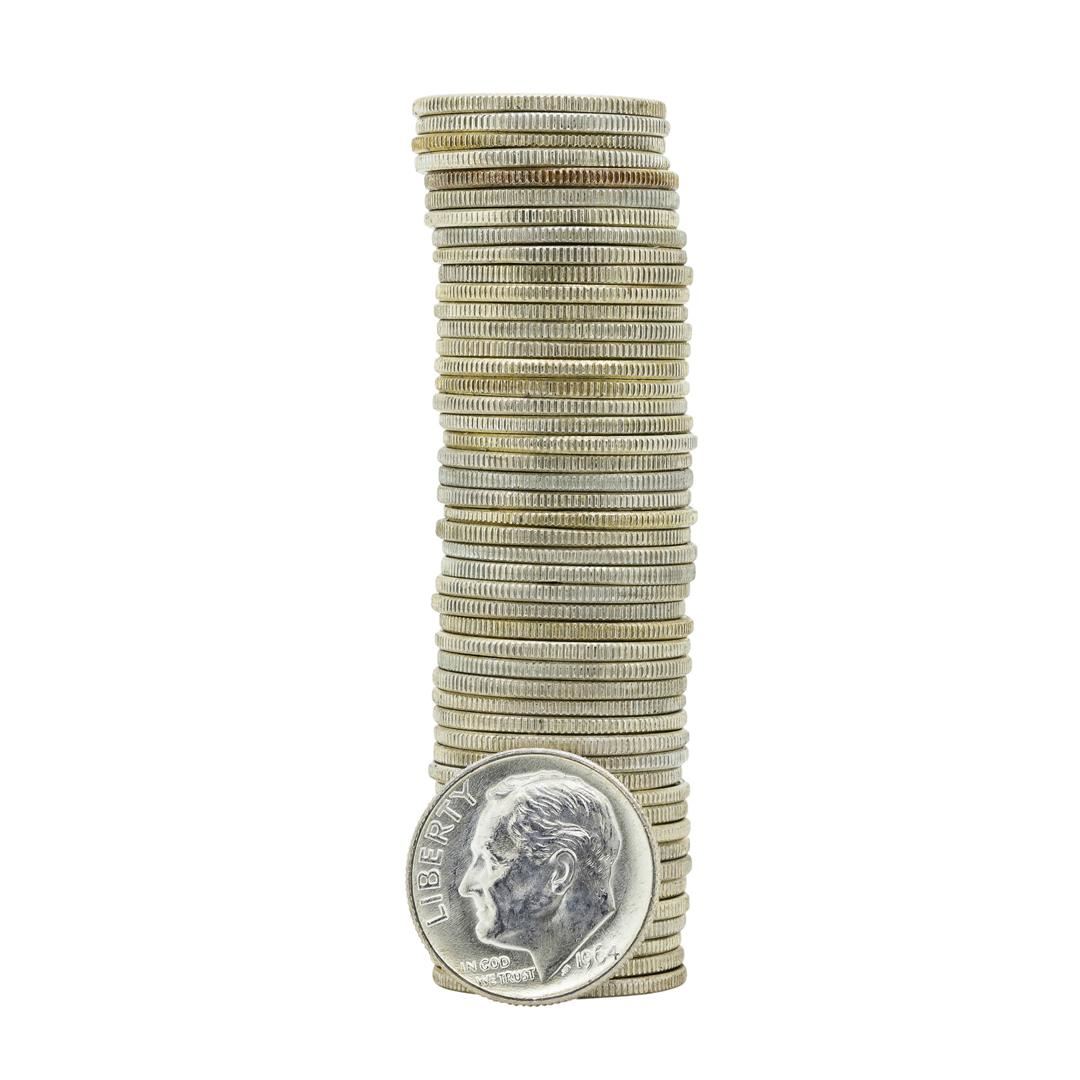 One Roll of (50) 1964-D Brilliant Uncirculated Roosevelt Dimes.