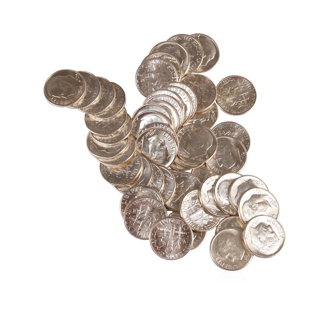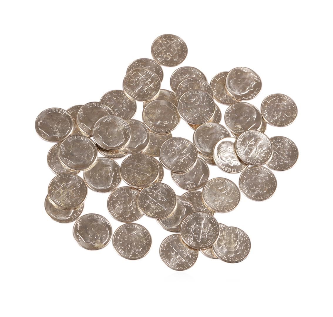 One Roll of (50) 1964-D Uncirculated Roosevelt Dimes.