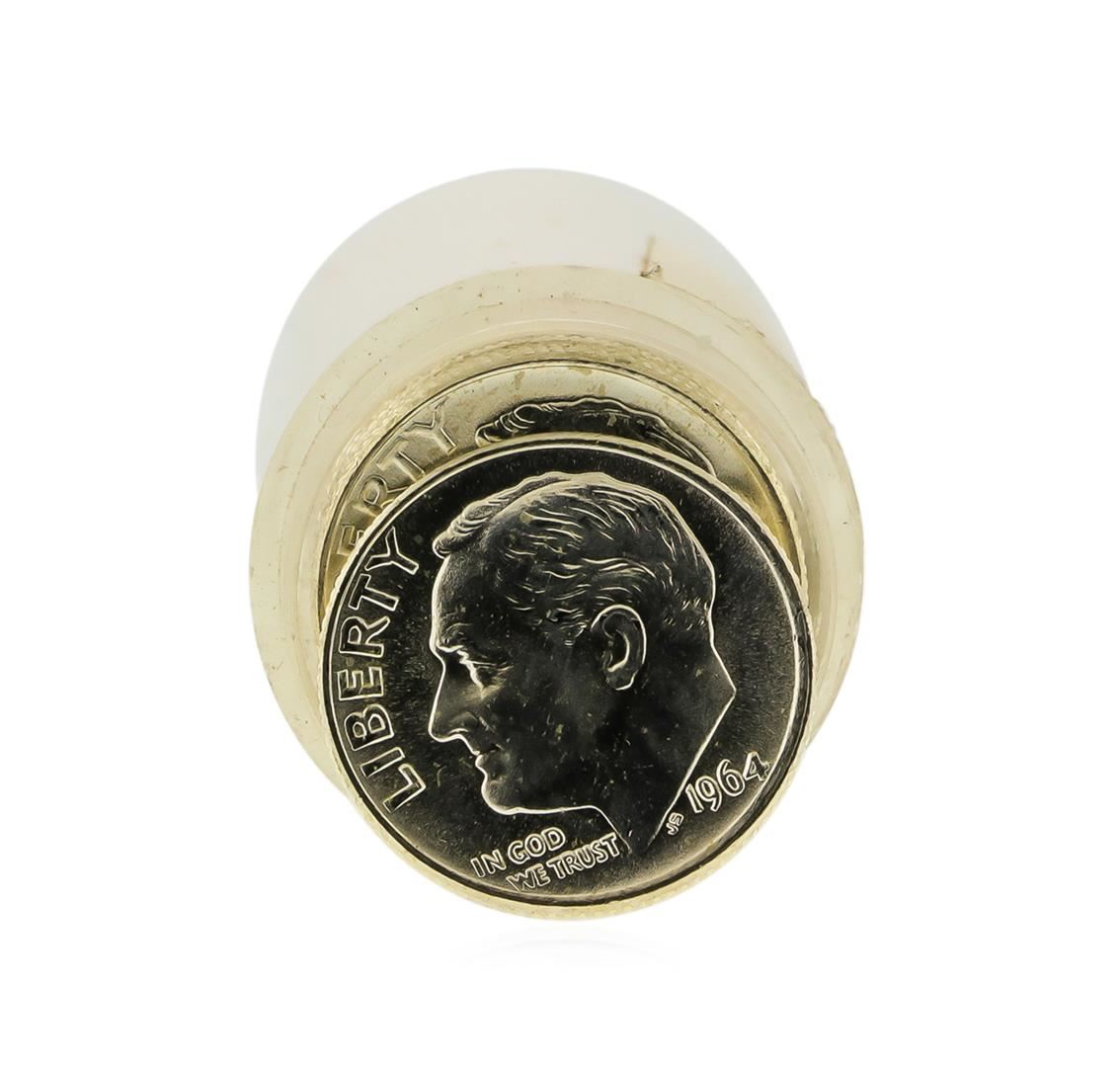 One Roll of (50) 1964-P Brilliant Uncirculated Roosevelt Dimes.