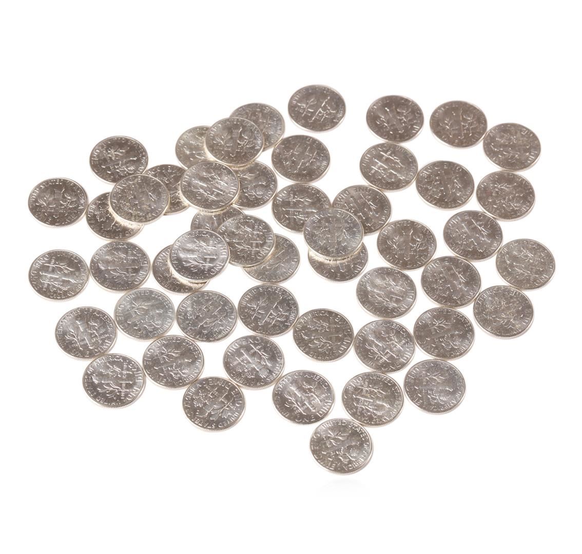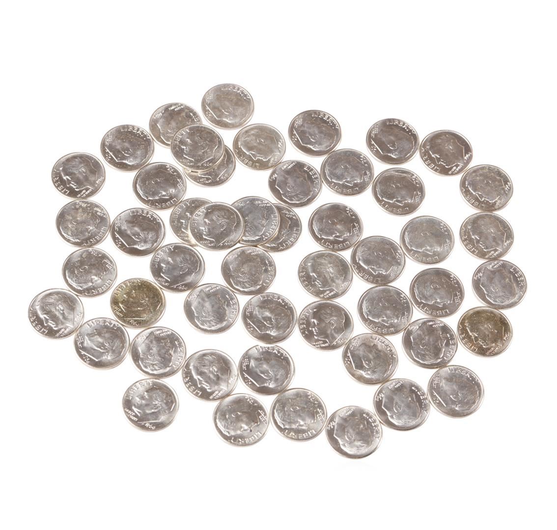 One Roll of (50) 1964 Uncirculated Roosevelt Dimes.