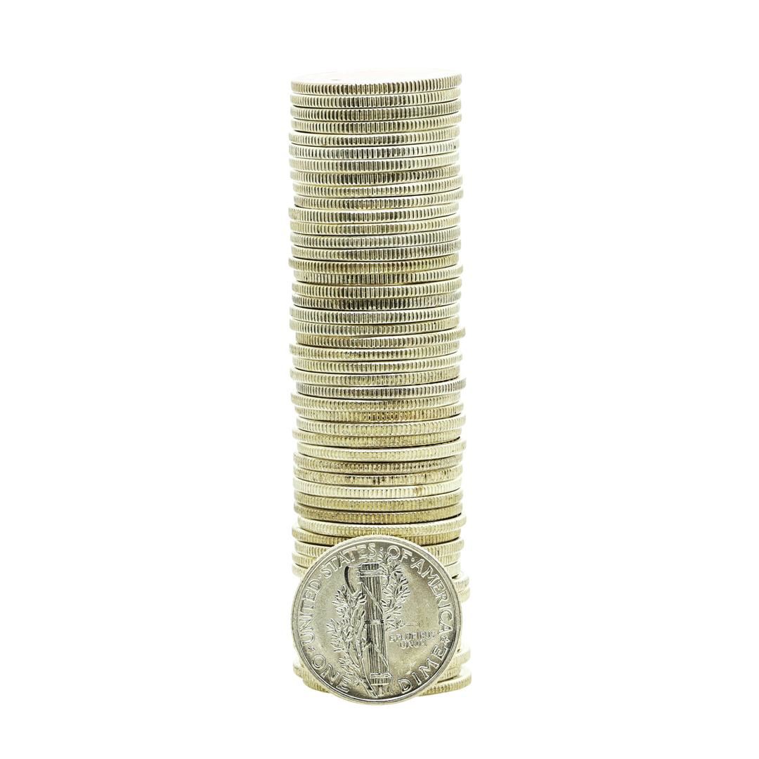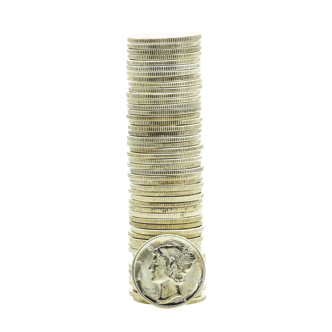 One Roll of (50) Brilliant Uncirculated 1942 Mercury Dime Coins.
