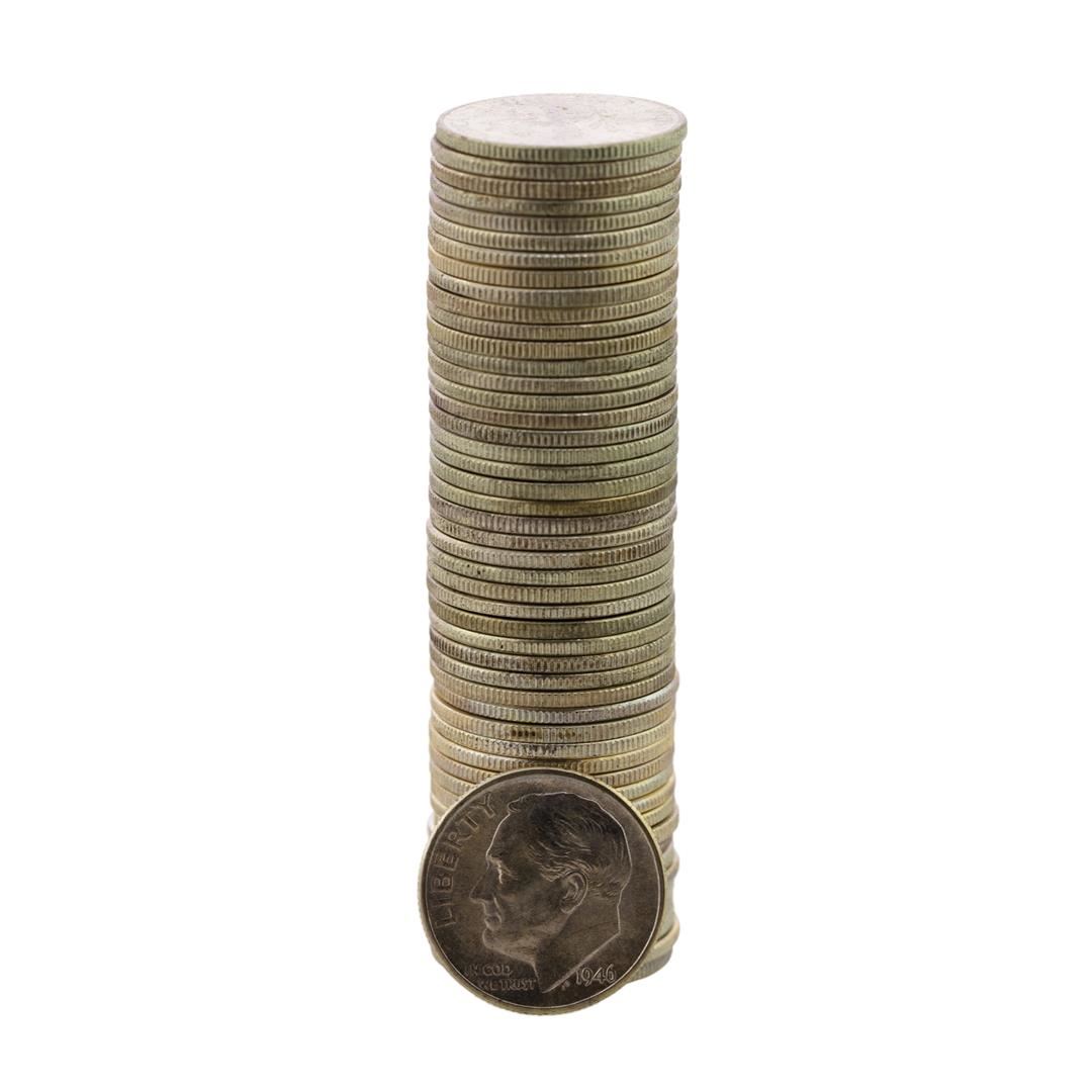 Roll of (50) Brilliant Uncirculated 1946-D Roosevelt Dime Coins