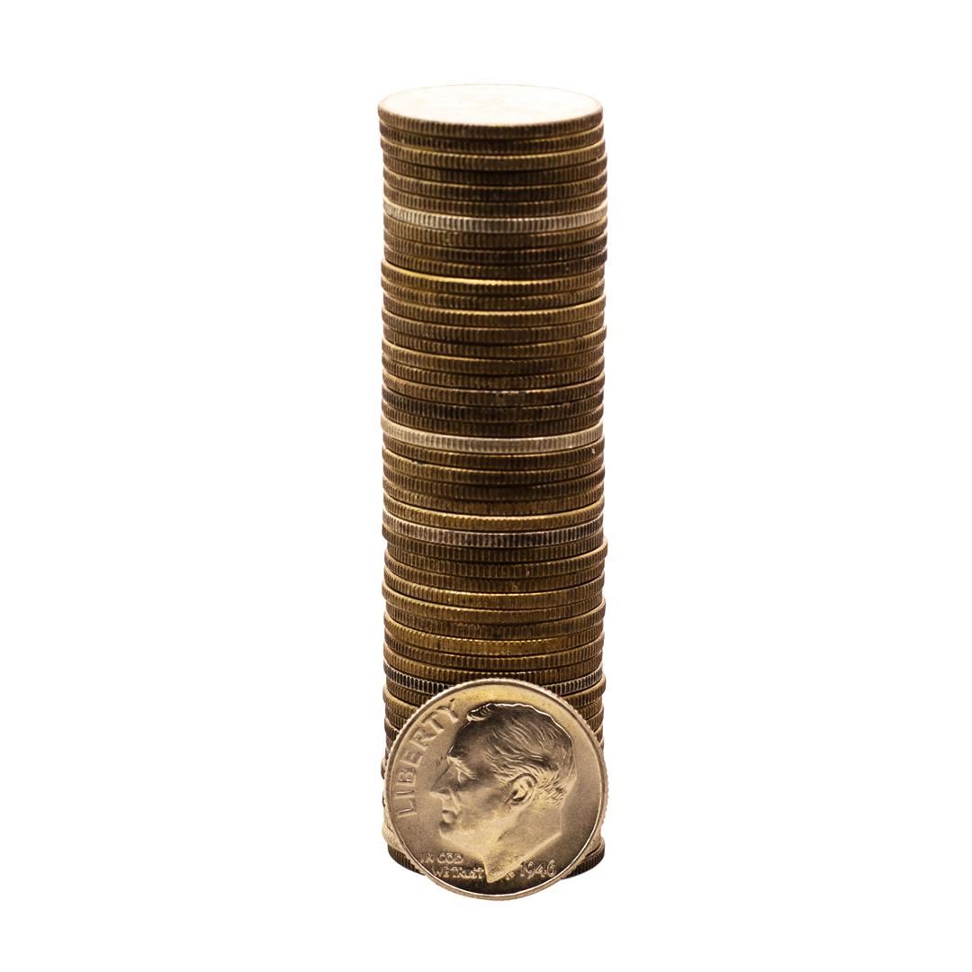 One Roll of (50) Brilliant Uncirculated 1946 Roosevelt Dime Coins.
