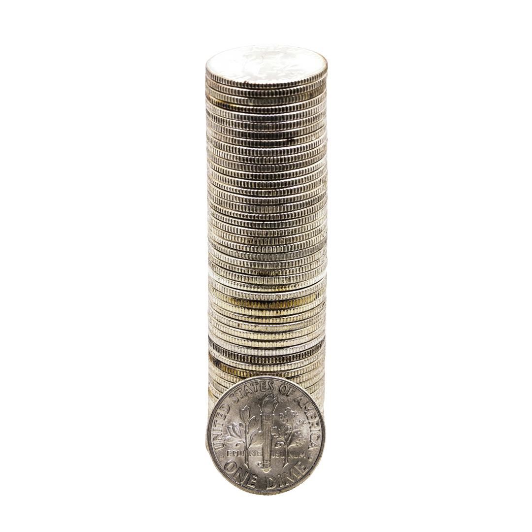 One Roll of (50) Brilliant Uncirculated 1948-D Roosevelt Dime Coins.