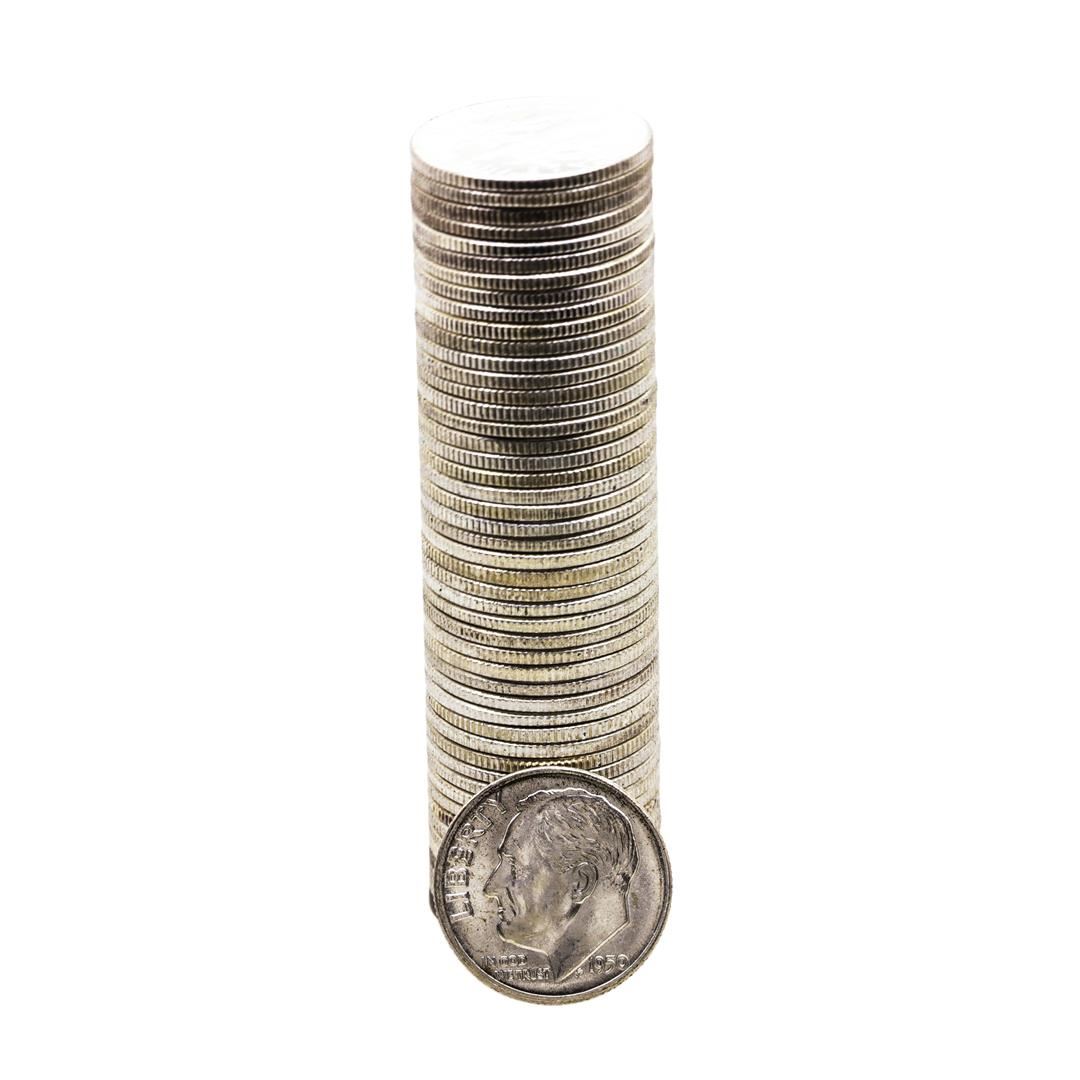 One Roll of (50) Brilliant Uncirculated 1950-P Roosevelt Dime Coins.