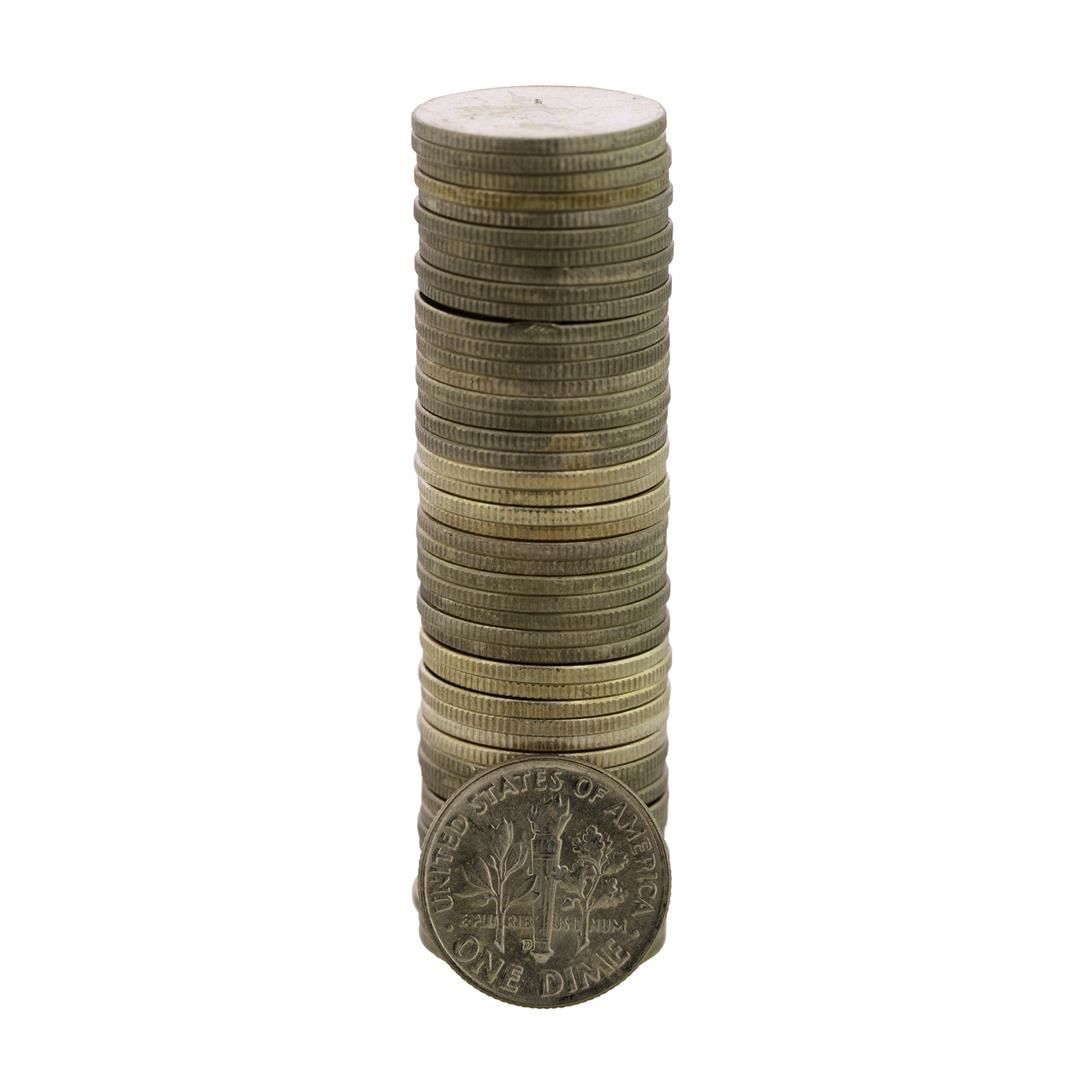 Roll of (50) Brilliant Uncirculated 1954-D Roosevelt Dime Coins