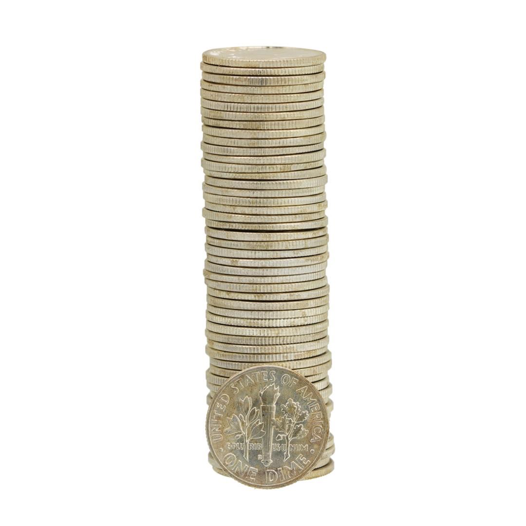 Roll of (50) Brilliant Uncirculated 1956-D Roosevelt Dime Coins