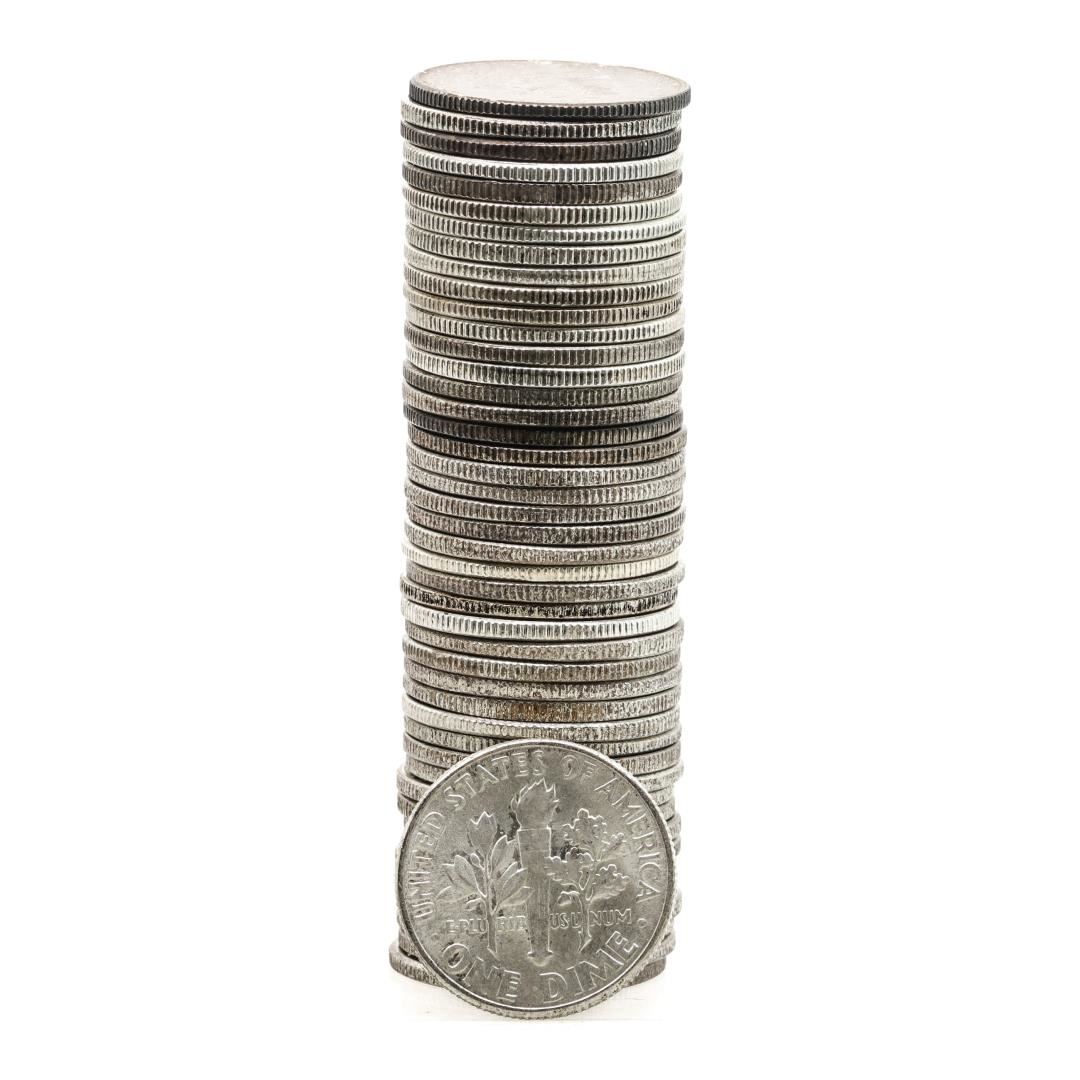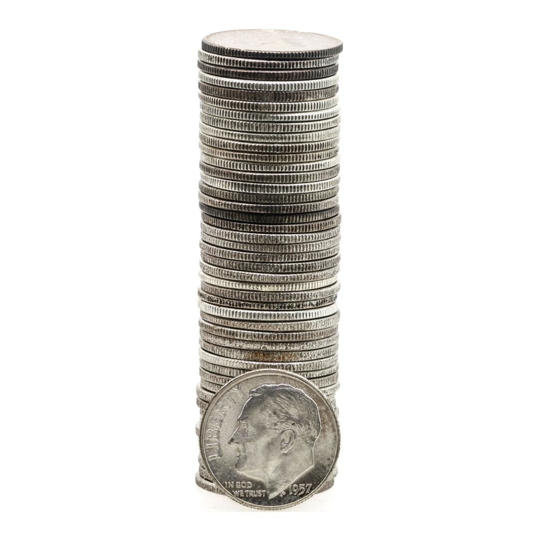 Roll of (50) Brilliant Uncirculated 1957 Roosevelt Dime Coins