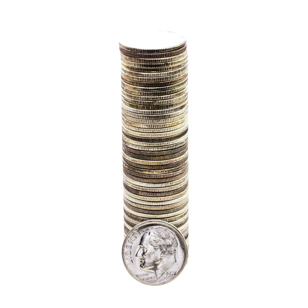 One Roll of (50) Brilliant Uncirculated 1957 Roosevelt Dimes.