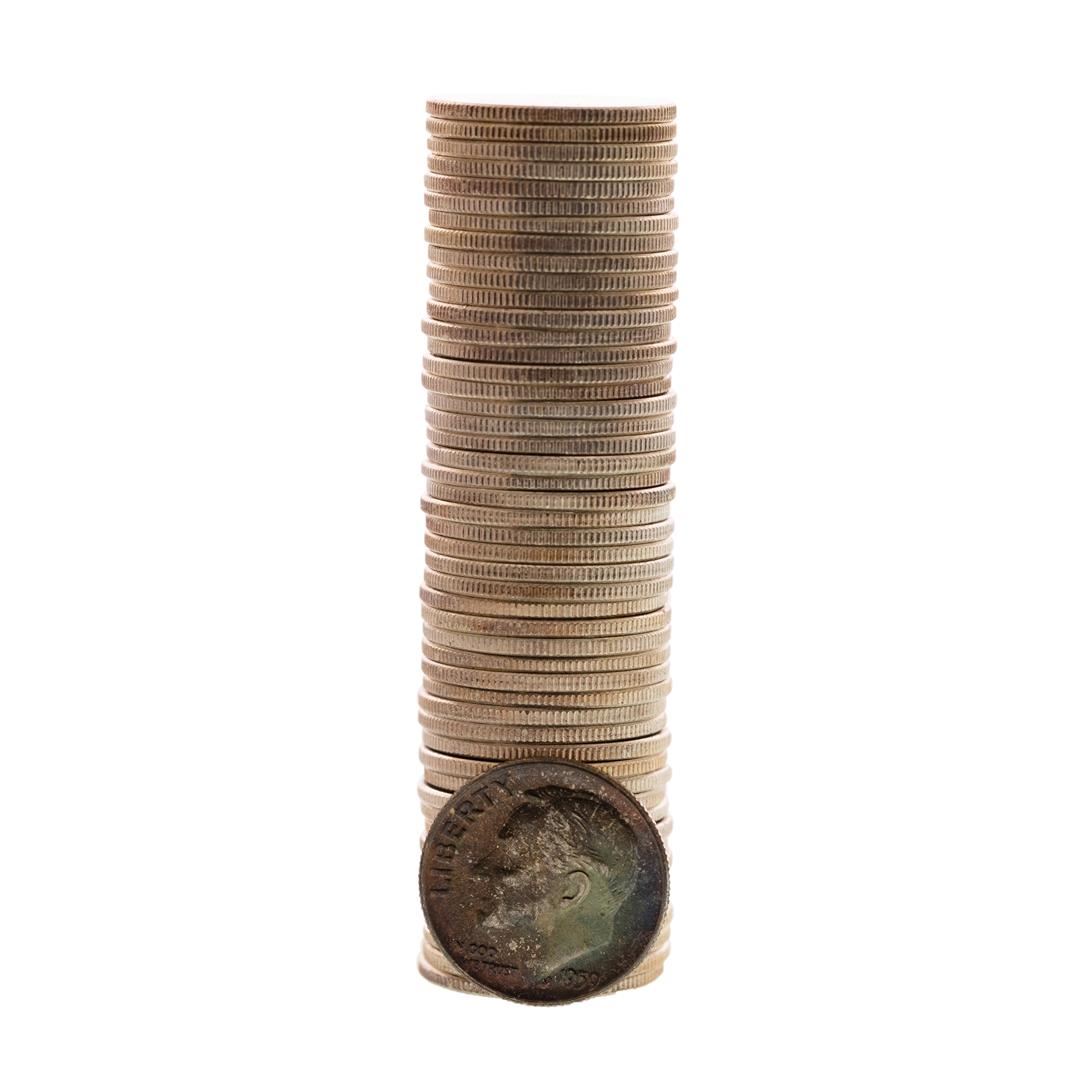 One Roll of (50) Brilliant Uncirculated 1959-D Roosevelt Dime Coins.