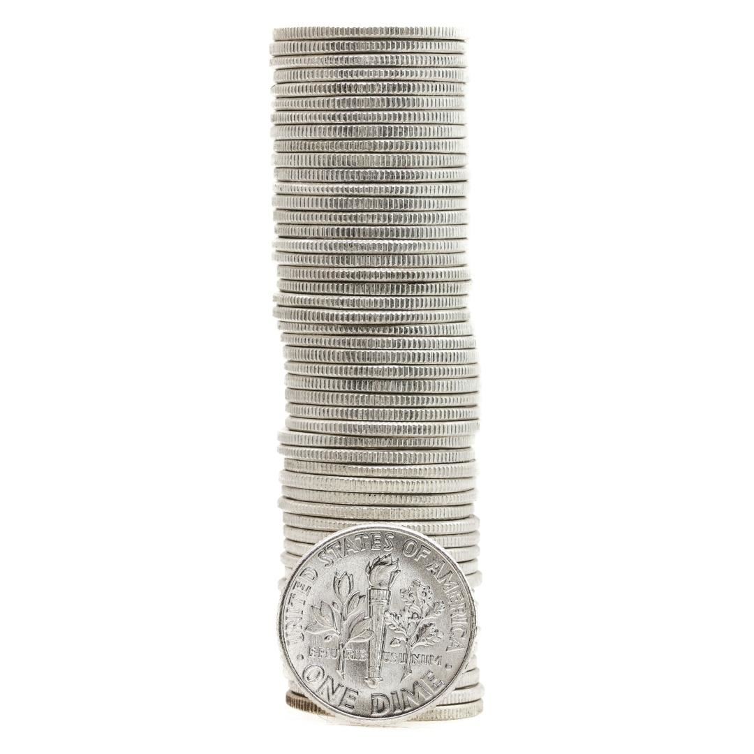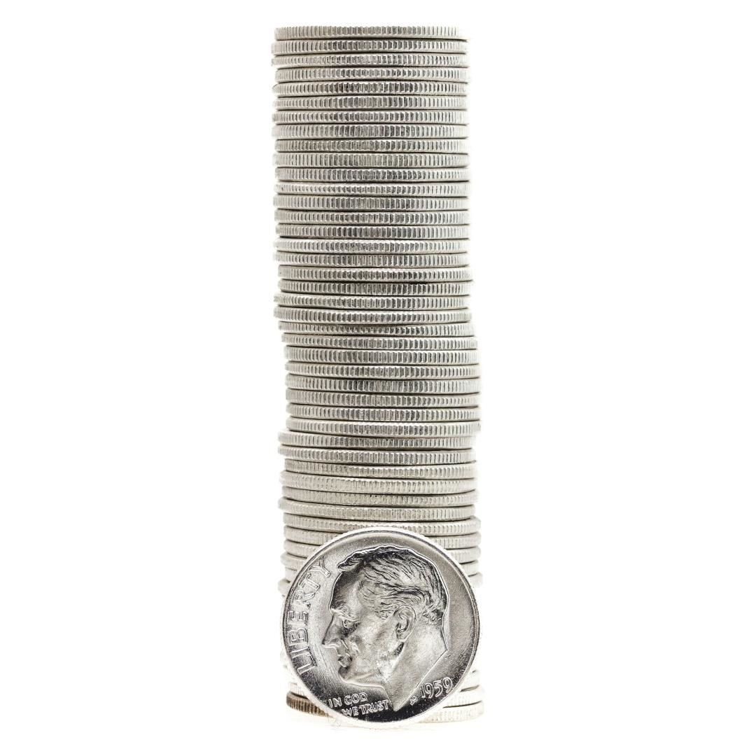 One Roll of (50) Brilliant Uncirculated 1959 Roosevelt Dime Coins.