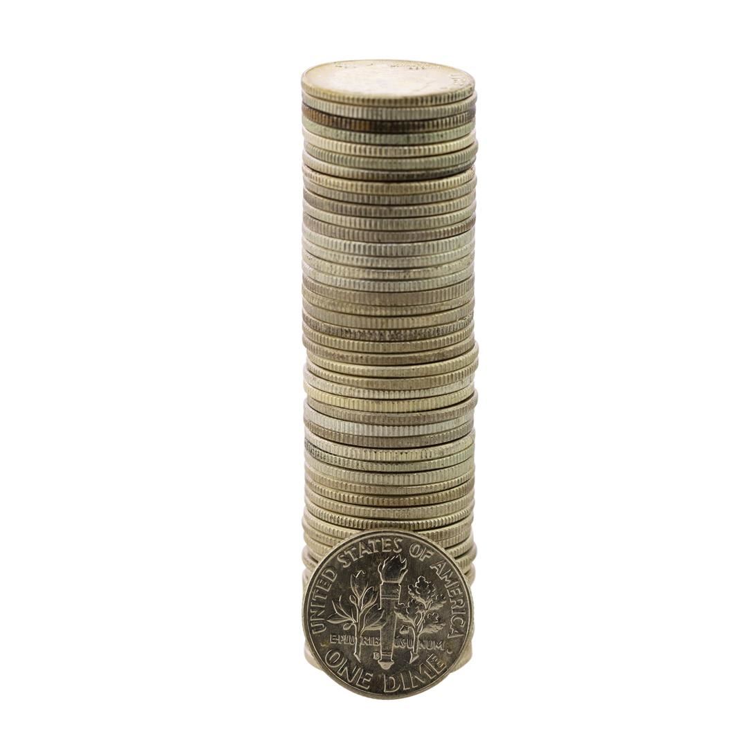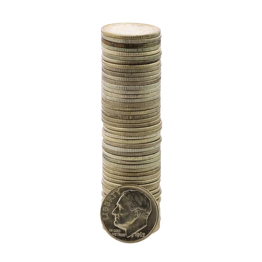 Roll of (50) Brilliant Uncirculated 1963-D Roosevelt Dime Coins