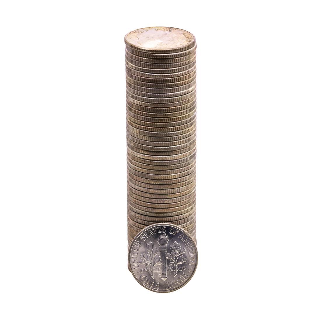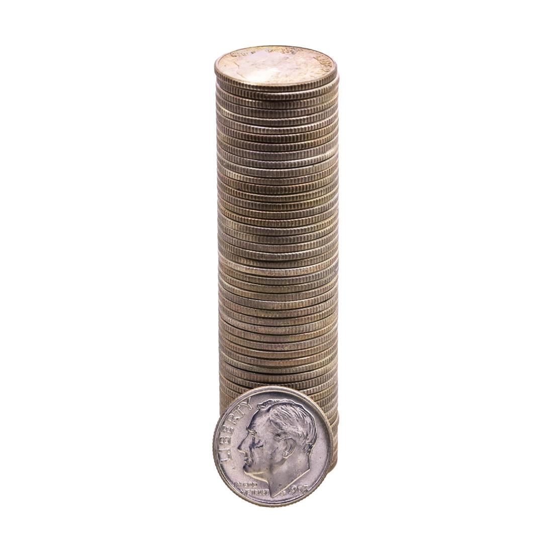 One Roll of (50) Brilliant Uncirculated 1963-D Roosevelt Dimes.