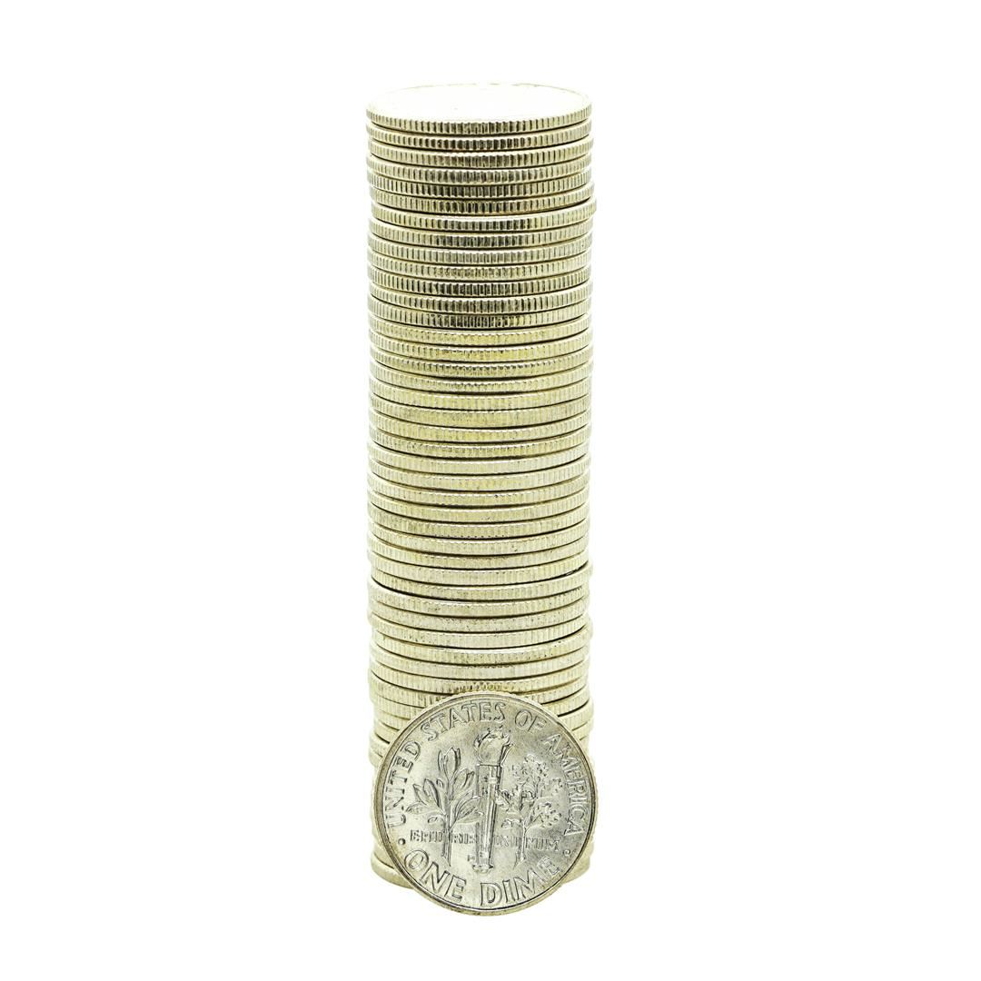 One Roll of (50) Brilliant Uncirculated 1963-D Roosevelt Dimes.
