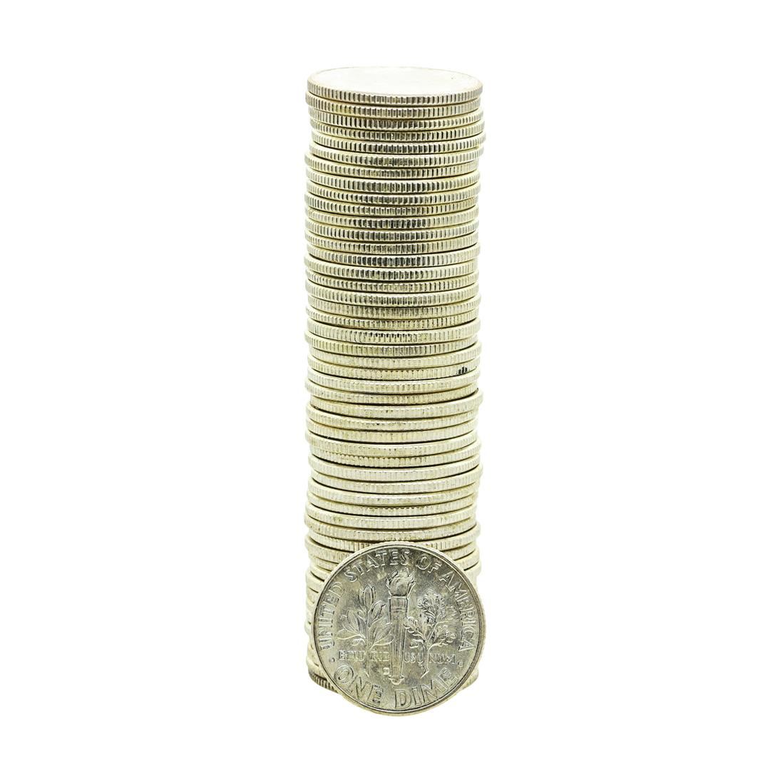 One Roll of (50) Brilliant Uncirculated 1964-D Roosevelt Dimes.