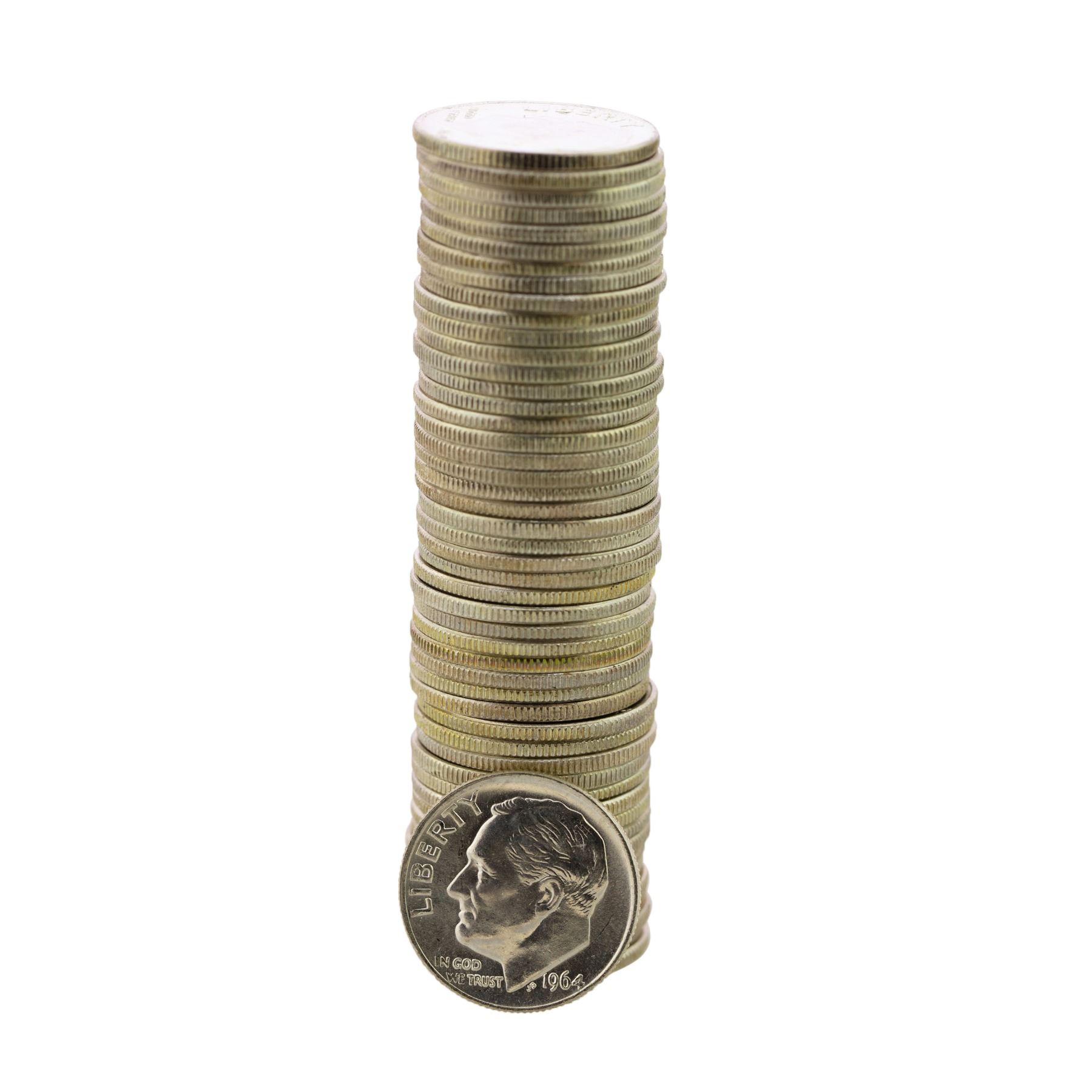 Roll of (50) Brilliant Uncirculated 1964 Roosevelt Dime Coins