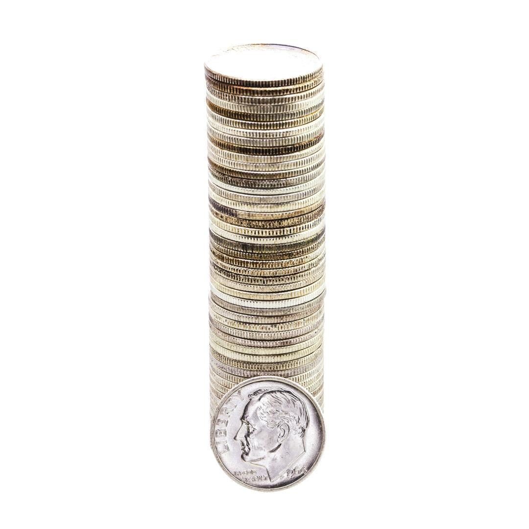 One Roll of (50) Brilliant Uncirculated 1964 Roosevelt Dimes.