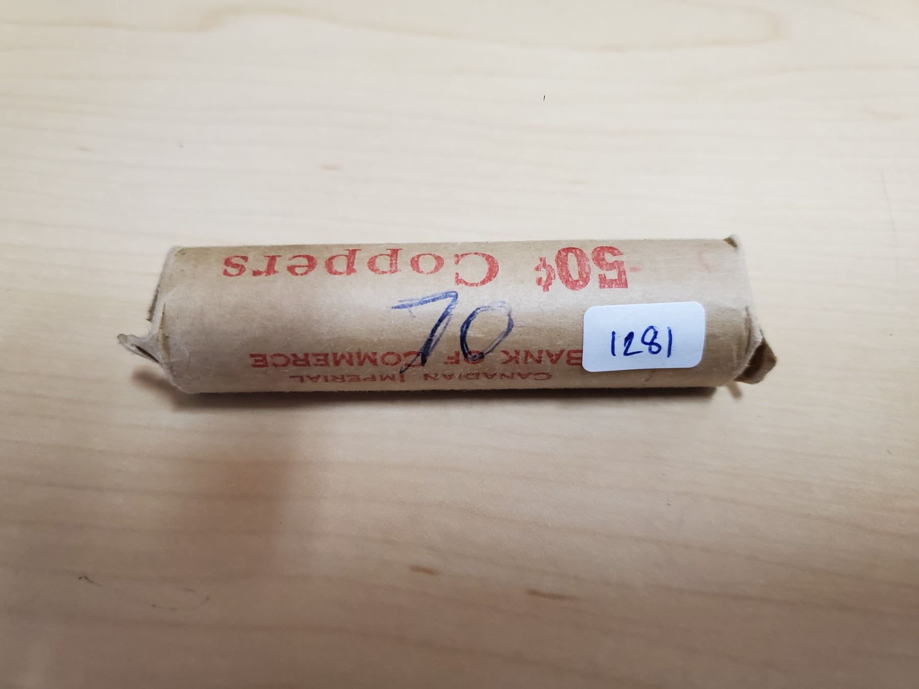 Roll of 50 Canadian 1970 Small Cents. Uncirculated.